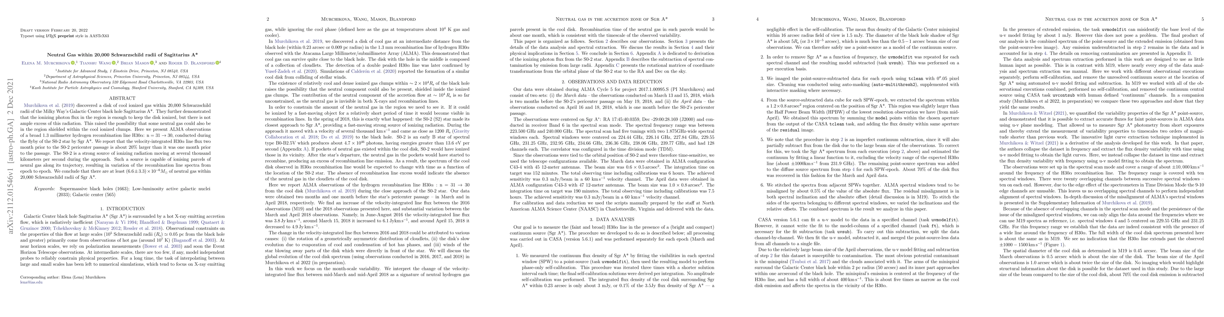 Murchikova et al 2019 discovered a disk of cool ionized gas within 20,000 Schwarzschild radii of the Milky Way's Galactic Center black hole Sagittarius A*. They further demonstrated that the ionizing photon flux in the region is enough to keep the disk ionized, but there is not ample excess of this radiation. This raised the possibility that some neutral gas could also be in the region shielded within the cool ionized clumps. Here we present ALMA observations of a broad 1.3 millimeter hydrogen recombination line H30alpha: n = 31 -> 30, conducted during the flyby of the S0-2 star by Sgr A*. We report that the velocity-integrated H30alpha line flux two month prior to the S0-2 pericenter passage is about 20% larger than it was one month prior to the passage. The S0-2 is a strong source of ionizing radiation moving at several thousand kilometers per second during the approach. Such a source is capable of ionising parcels of neural gas along its trajectory, resulting in variation of the recombination line spectra from epoch to epoch. We conclude that there are at least (6.6 +- 3.3) x 10^{-6} Msun of neutral gas within 20,000 Schwarzschild radii of Sgr A*.