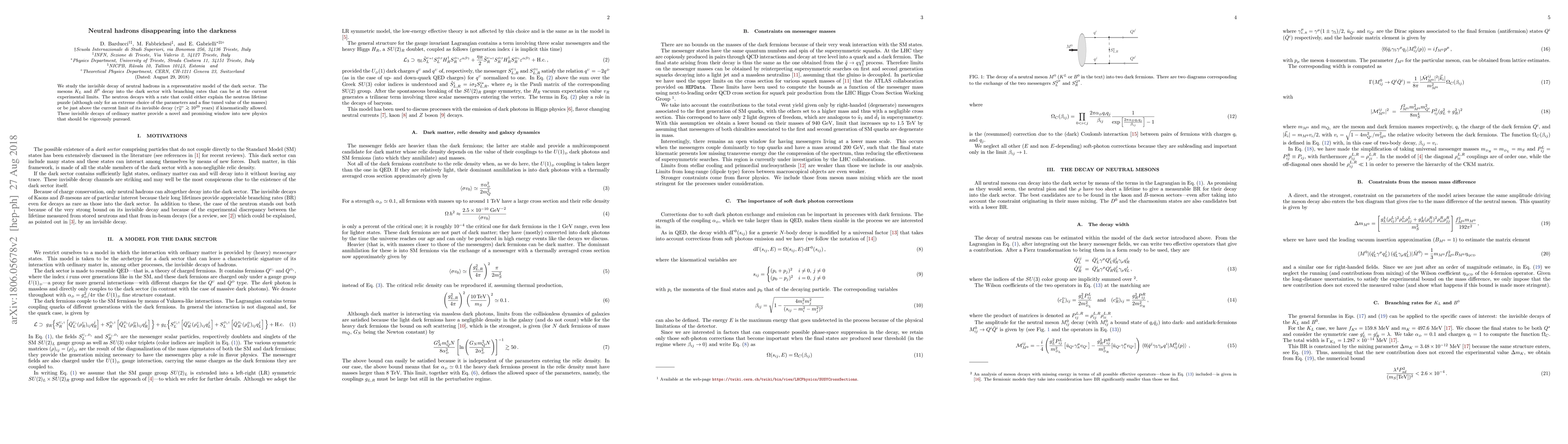 The research studies the invisible decay of neutral hadrons, specifically KL, B0, and the neutron, into a dark sector using a representative model with dark fermions and heavy messenger fields. It calculates decay widths and branching ratios, considering constraints from meson mass differences and lattice estimates.