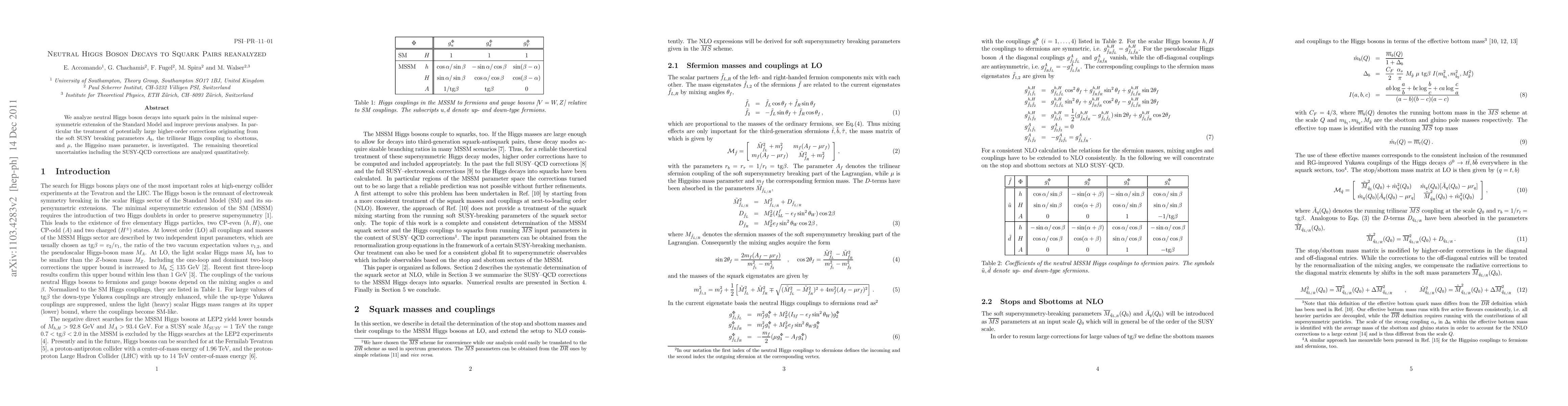 This paper reanalyzes neutral Higgs boson decays into squark pairs in the minimal supersymmetric Standard Model, focusing on higher-order corrections from soft SUSY breaking parameters and quantifying remaining theoretical uncertainties, including SUSY-QCD corrections.