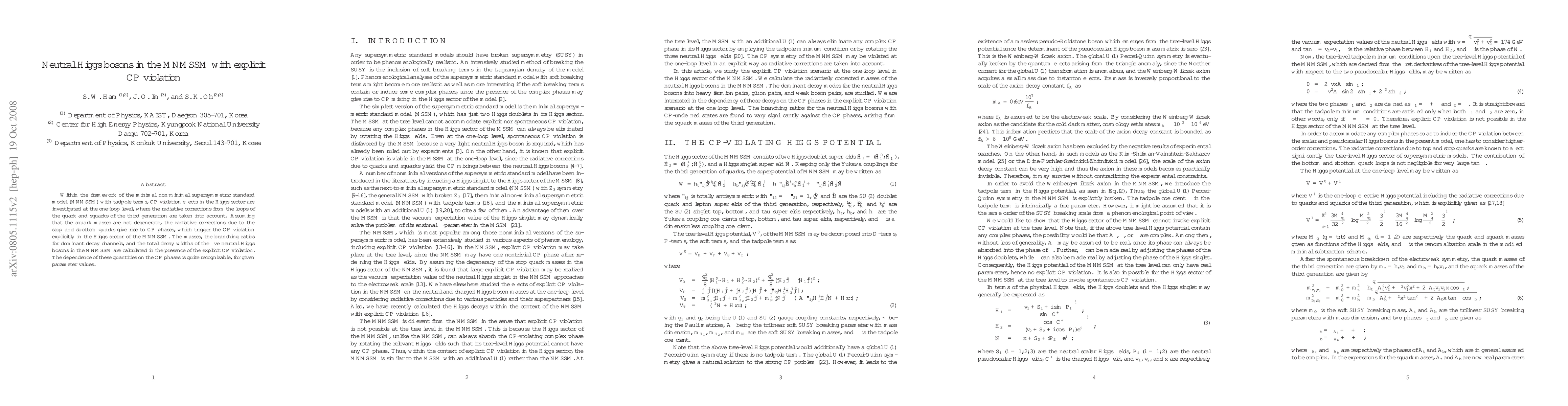 This research paper investigates CP violation in the Higgs sector of the minimal non-minimal supersymmetric standard model, calculating masses, decay rates, and total widths for five neutral Higgs bosons with explicit CP violation included.