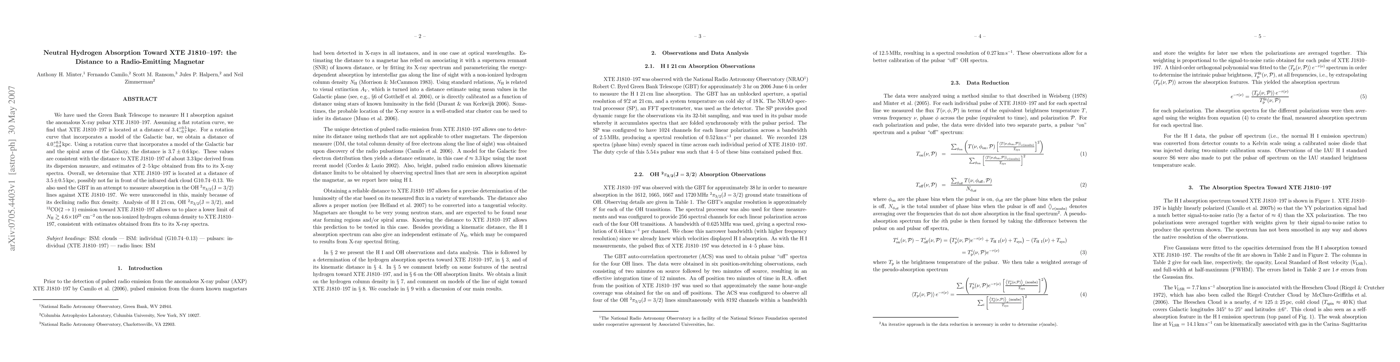 Researchers used the Green Bank Telescope to measure neutral hydrogen absorption against XTE J1810-197, a magnetar, and found it located at approximately 3.5 kpc from Earth, consistent with estimates from its X-ray spectra.