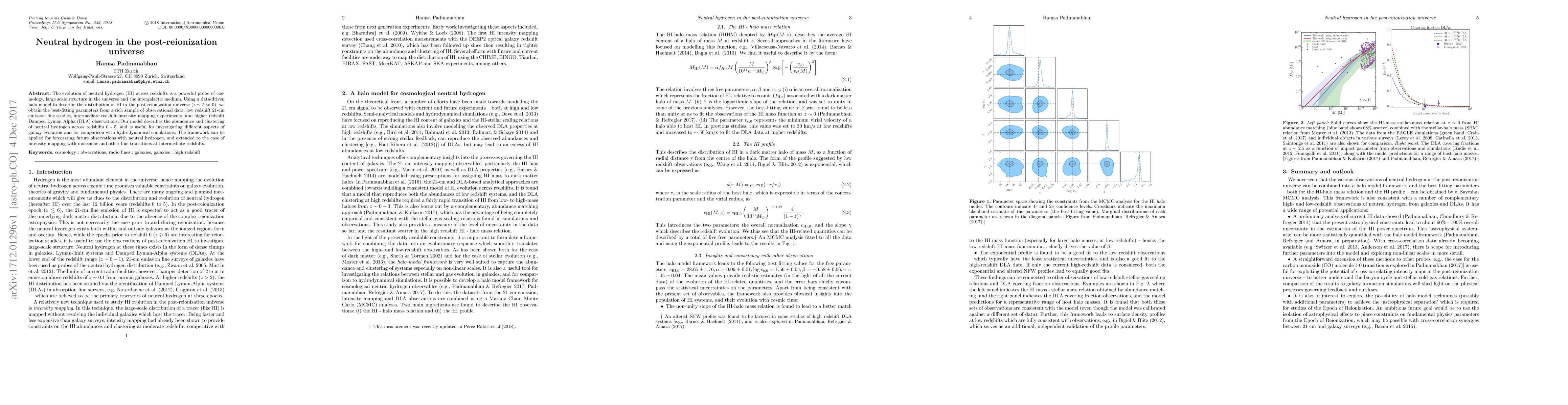 The study introduces a comprehensive halo model framework for neutral hydrogen in the post-reionization universe, combining various observational datasets and providing best-fitting parameters for HI-halomass relation and HI profile.