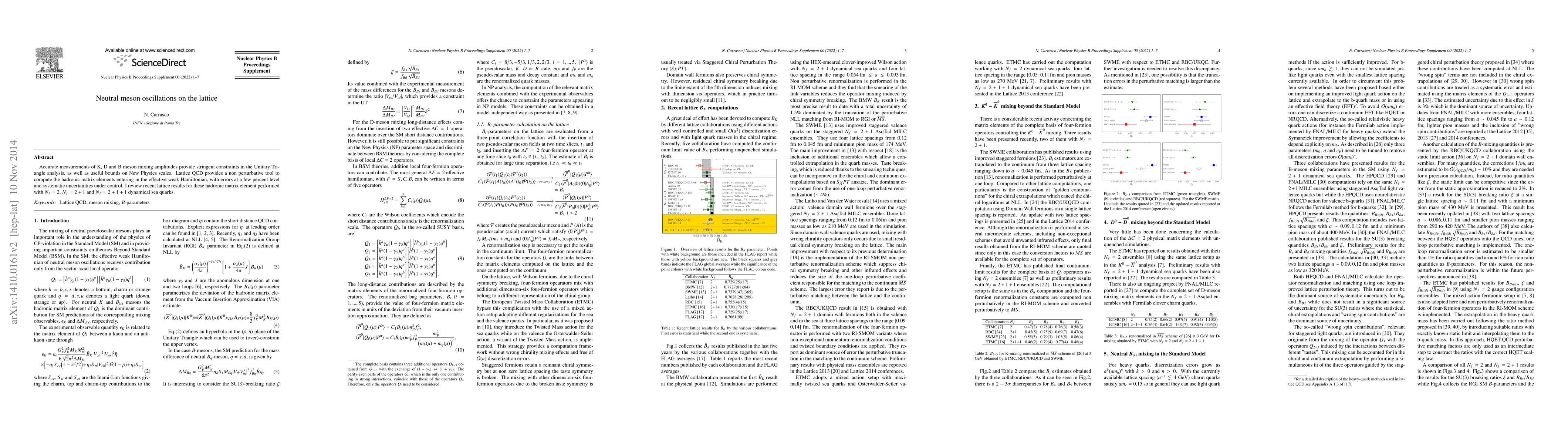 This paper reviews recent lattice QCD calculations of neutral meson oscillations for K, D, and B mesons, providing precise hadronic matrix elements crucial for Unitary Triangle analysis and probing potential New Physics. The results, achieved with varying numbers of dynamical sea quarks, demonstrate controlled systematic uncertainties and errors at the few percent level.