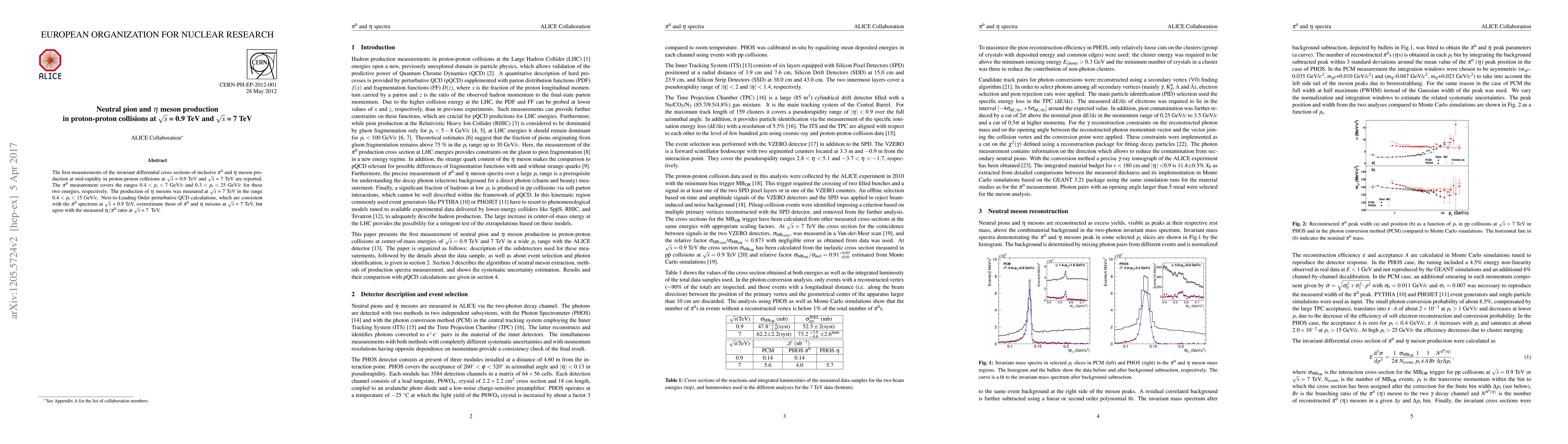 This paper reports the first measurements of $\pi^0$ and $\eta$ meson production in proton-proton collisions at $\sqrt{s}=0.9$ TeV and $\sqrt{s}=7$ TeV, finding that next-to-leading order perturbative QCD calculations match the $\pi^0$ spectrum at 0.9 TeV but overestimate production at 7 TeV.