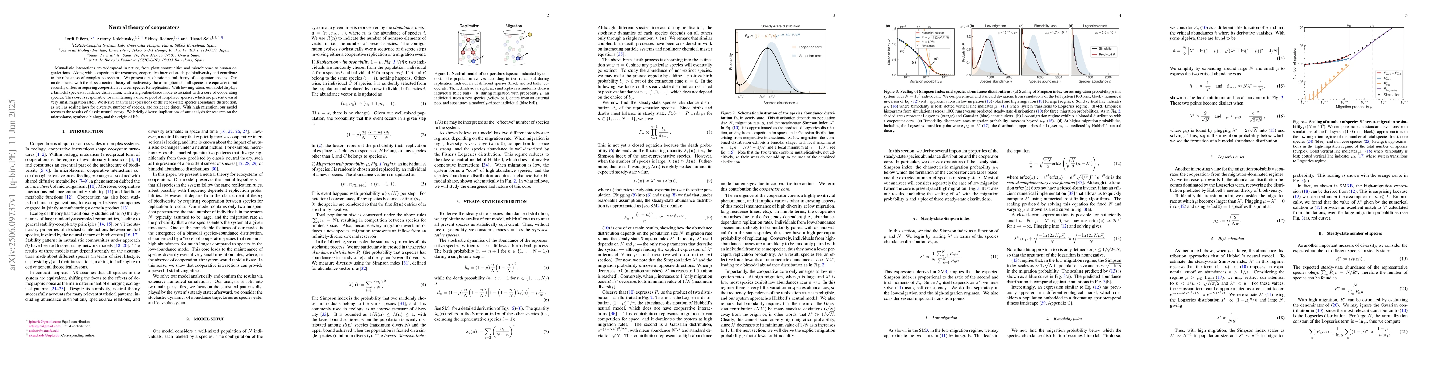 Mutualistic interactions are widespread in nature, from plant communities and microbiomes to human organizations. Along with competition for resources, cooperative interactions shape biodiversity and contribute to the robustness of complex ecosystems. We present a stochastic neutral theory of cooperator species. Our model shares with the classic neutral theory of biodiversity the assumption that all species are equivalent, but crucially differs in requiring cooperation between species for replication. With low migration, our model displays a bimodal species-abundance distribution, with a high-abundance mode associated with a core of cooperating species. This core is responsible for maintaining a diverse pool of long-lived species, which are present even at very small migration rates. We derive analytical expressions of the steady-state species abundance distribution, as well as scaling laws for diversity, number of species, and residence times. With high migration, our model recovers the results of classic neutral theory. We briefly discuss implications of our analysis for research on the microbiome, synthetic biology, and the origin of life.
