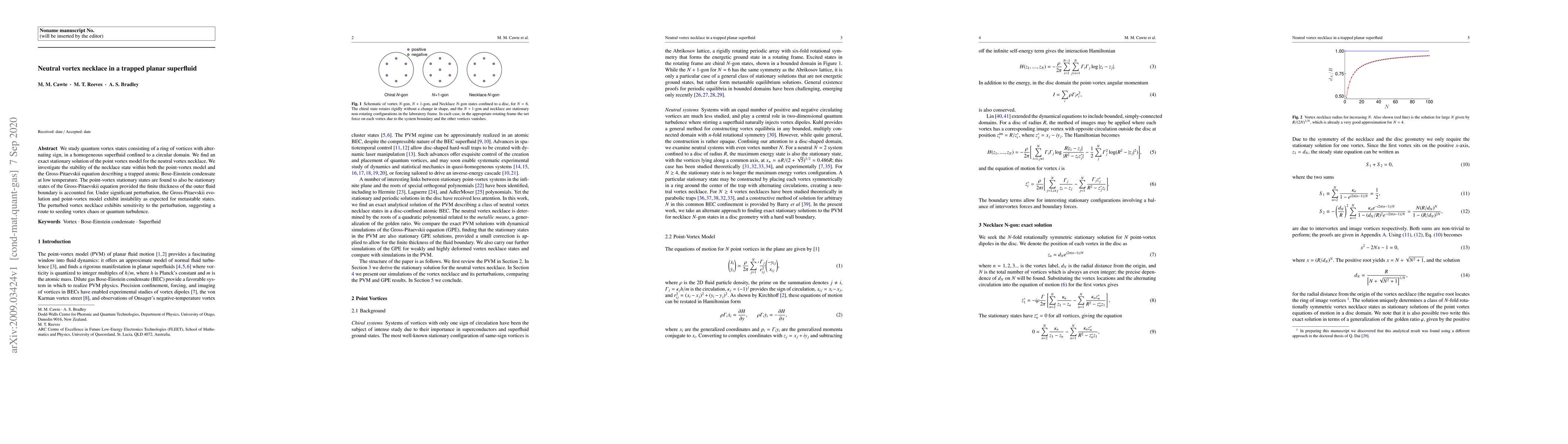 This paper investigates a ring of alternating-sign vortices in a trapped planar superfluid, finding an exact stationary solution for the neutral vortex necklace. It examines the stability of this necklace state within both the point vortex model and the Gross-Pitaevskii equation, revealing potential for seeding vortex chaos or quantum turbulence under significant perturbations.