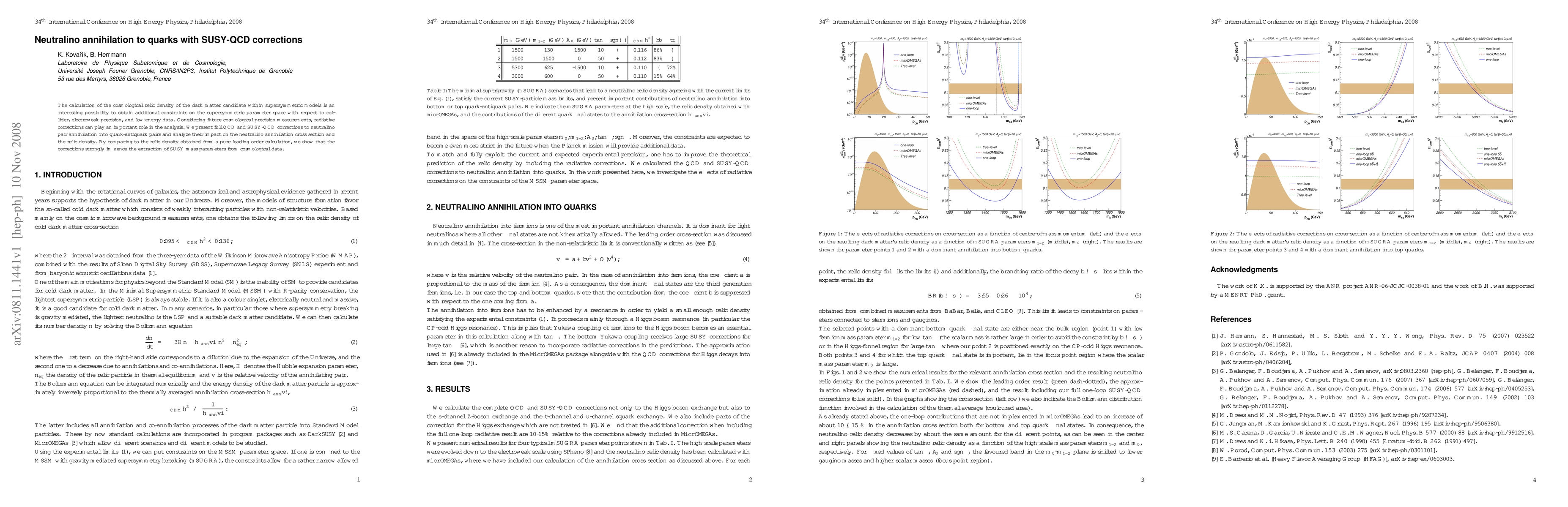 The paper presents a detailed calculation of QCD and SUSY-QCD corrections to neutralino annihilation into quarks, including Higgs boson exchange, s-channel Z-boson exchange, and t/u-channel quark exchanges.