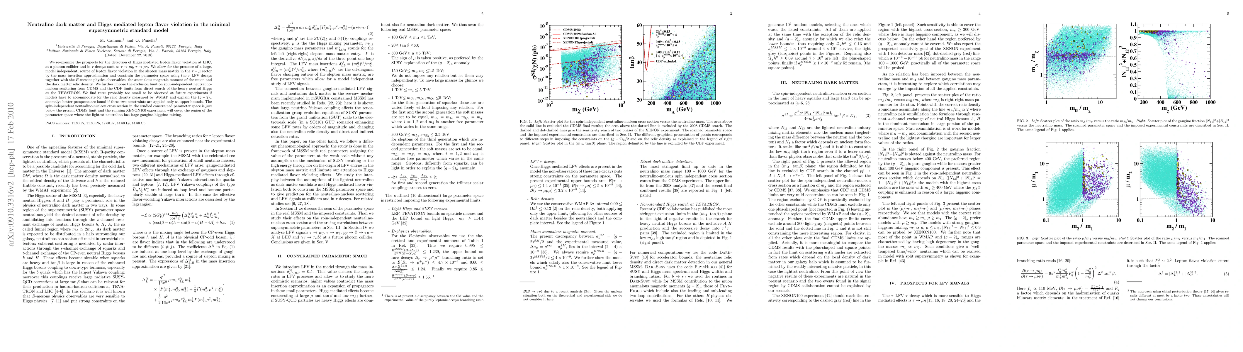 This paper explores neutralino dark matter and Higgs-mediated lepton flavor violation in the Minimal Supersymmetric Standard Model under large $\tan\beta$ and heavy squark/gluino scenarios. It constrains the parameter space using various experimental constraints and finds that Higgs-mediated LFV rates are likely too small for future detection, except if relic density and muon $(g-2)$ constraints are relaxed.