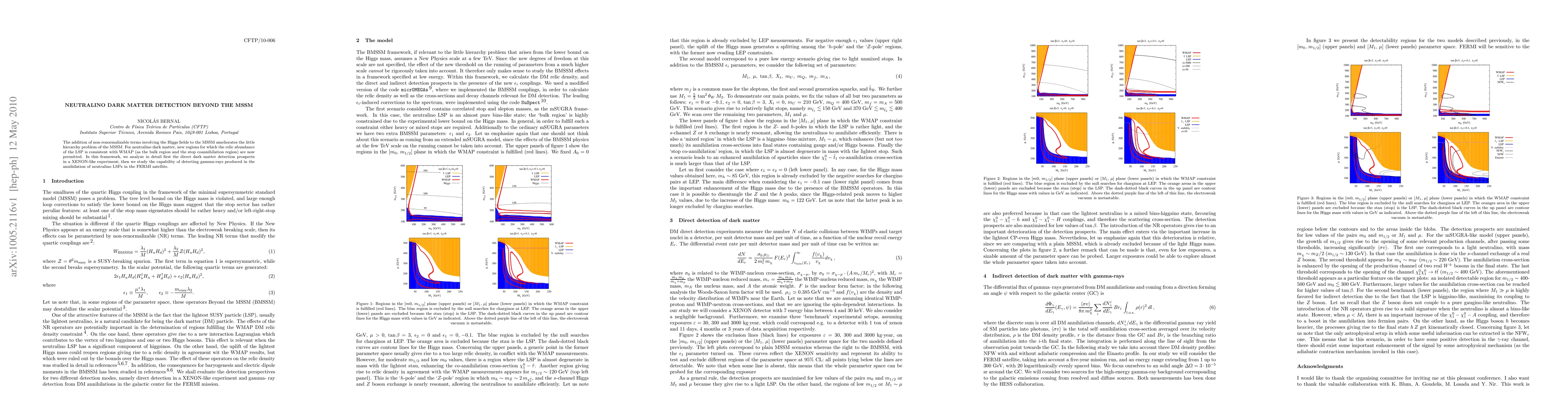 This paper explores the implications of adding non-renormalizable terms to the Minimal Supersymmetric Standard Model (MSSM) to address the little hierarchy problem, allowing for new neutralino dark matter scenarios consistent with WMAP data. It examines the prospects for detecting these neutralinos in direct experiments like XENON and through gamma-ray observations from Fermi satellite annihilations.