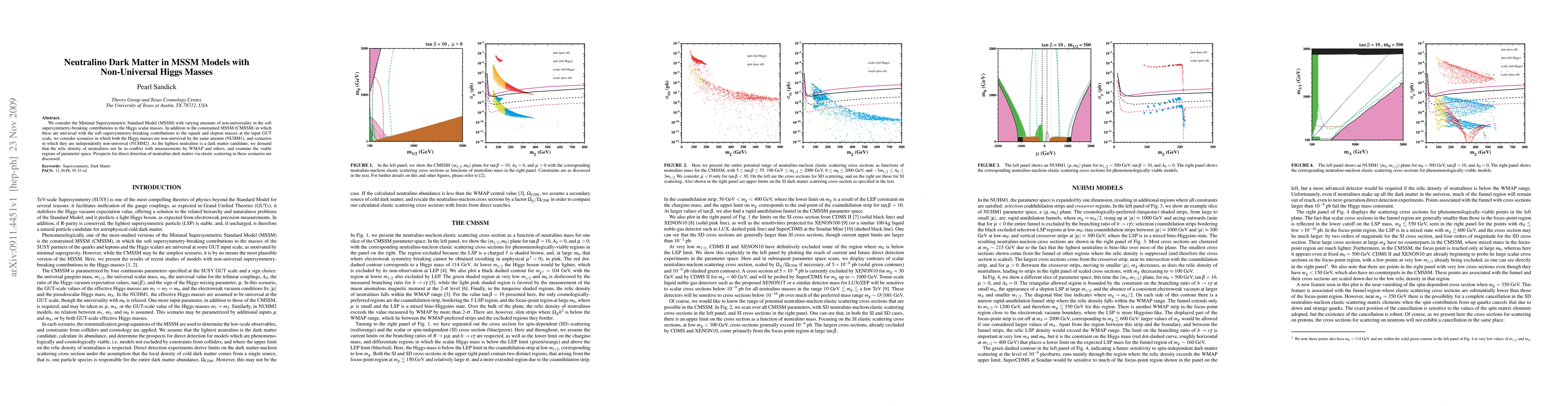 This paper explores MSSM models with non-universal Higgs masses, analyzing various scenarios (CMSSM, NUHM1, NUHM2) to determine viable neutralino dark matter regions that align with observational constraints. It also discusses the prospects for detecting neutralinos through elastic scattering.