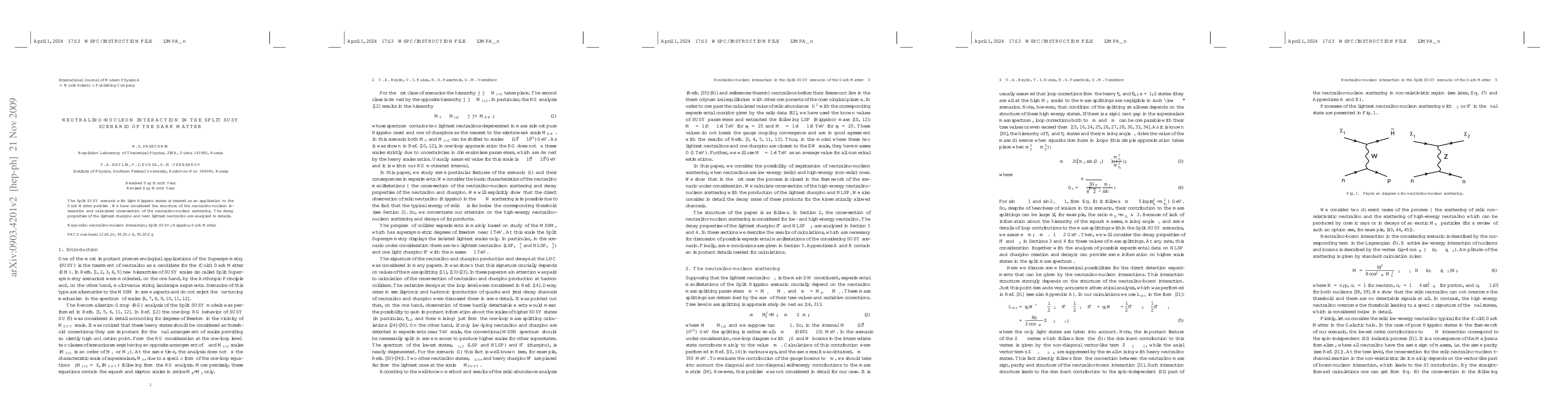 The Split SUSY scenario with light Higgsino states is treated as an application to the Dark Matter problem. We have considered the structure of the neutralino-nucleon interaction and calculated cross-section of the neutralino-nucleon scattering. The decay properties of the lightest chargino and next lightest neutralino are analyzed in details.