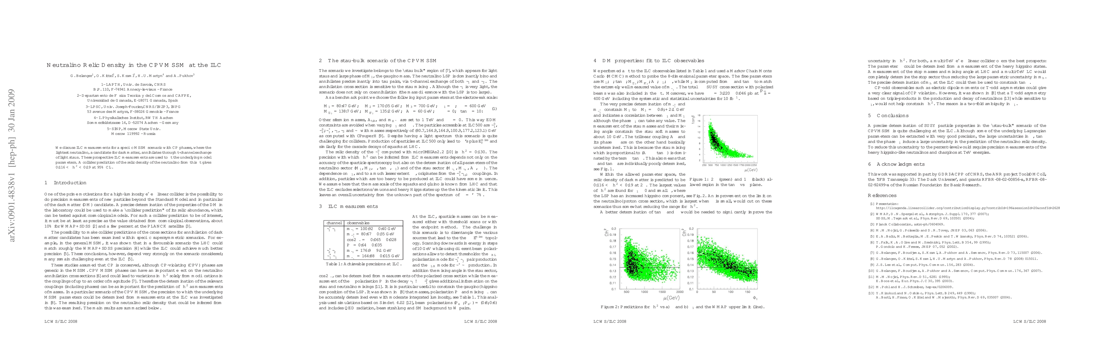 This paper examines the neutralino relic density in the CPVMSSM framework, focusing on a scenario where the lightest neutralino annihilates via light stau exchange. The study uses ILC measurements to fit the model parameters, predicting a neutralino relic density of 0.116 < Ωh² < 0.19 at 95% confidence level.