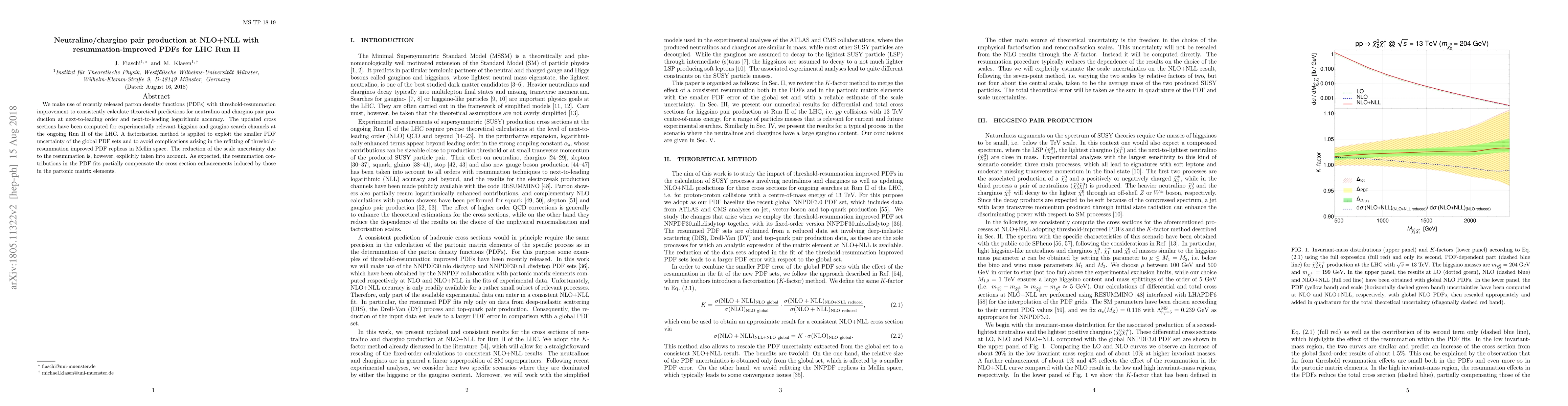 This paper presents next-to-leading order and next-to-leading logarithmic accuracy calculations for neutralino and chargino pair production at the LHC, utilizing improved parton density functions with resummation. The study aims to reduce uncertainties and enhance prediction accuracy for higgsino and gaugino searches.