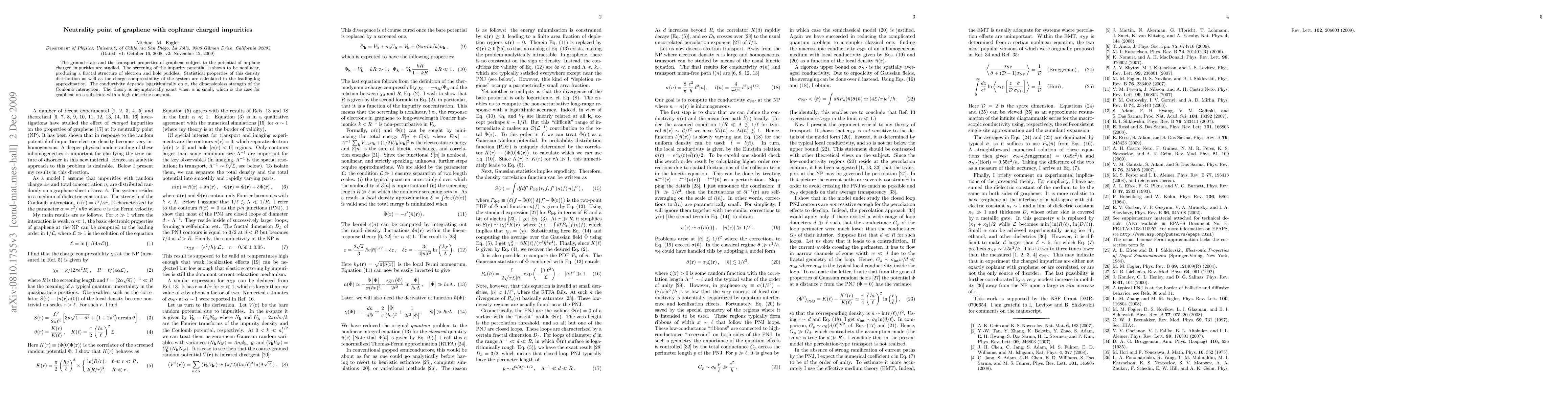 Summary: The study investigates graphene's ground-state and transport characteristics under in-plane charged impurities, revealing a nonlinear screening effect that creates a fractal pattern of electron and hole puddles, with conductivity depending logarithmically on the Coulomb interaction strength. The theory holds asymptotically for graphene on substrates with high dielectric constants.