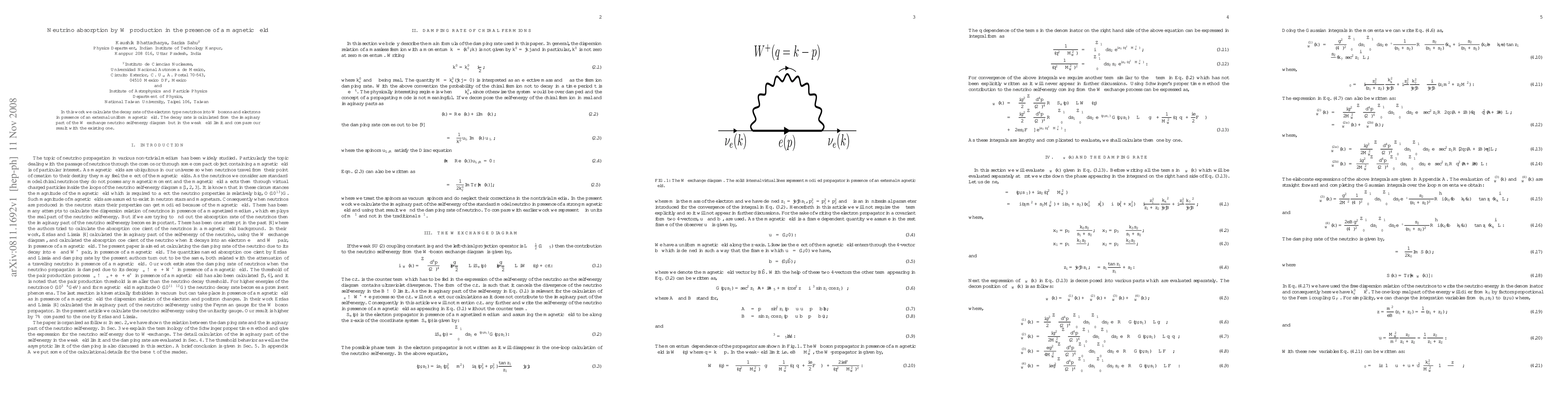 This paper investigates the decay rate of electron neutrinos into $W$ bosons and electrons under the influence of an external uniform magnetic field, calculating it from the imaginary part of the $W$ exchange neutrino self-energy diagram in the weak field limit and comparing the results with existing data.
