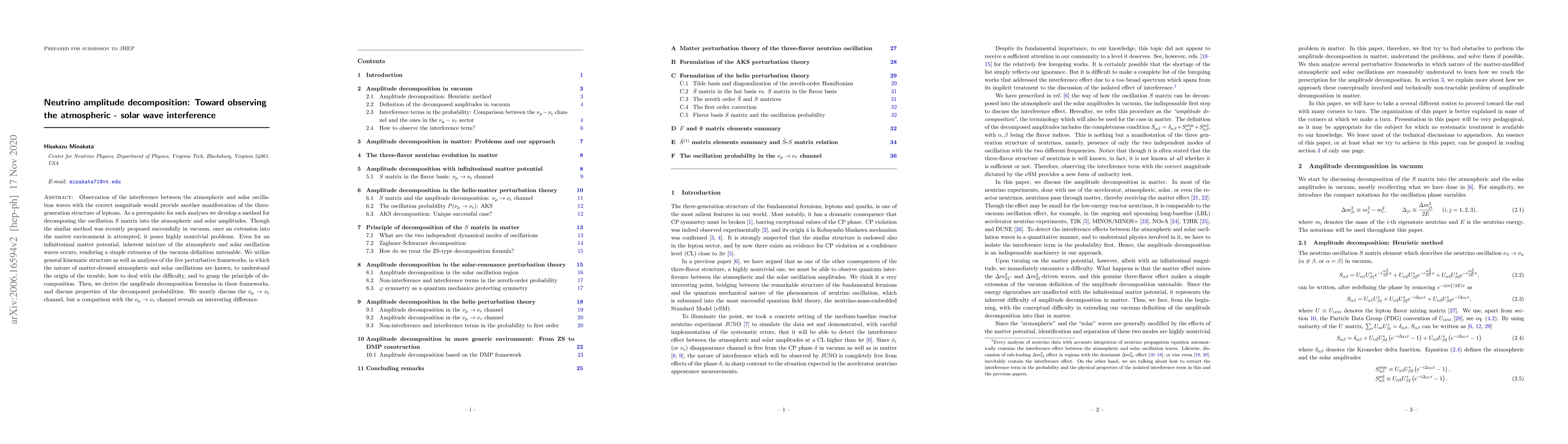 This paper develops a method to decompose the oscillation $S$ matrix into atmospheric and solar neutrino amplitudes, crucial for observing interference between these oscillations in a matter environment. It addresses the challenges posed by the inherent mixture of these oscillations in matter and derives decomposition formulas, focusing on the $\nu_{\mu} \rightarrow \nu_{e}$ channel with insights into differences compared to the $\nu_{\mu} \rightarrow \nu_{\tau}$ channel.