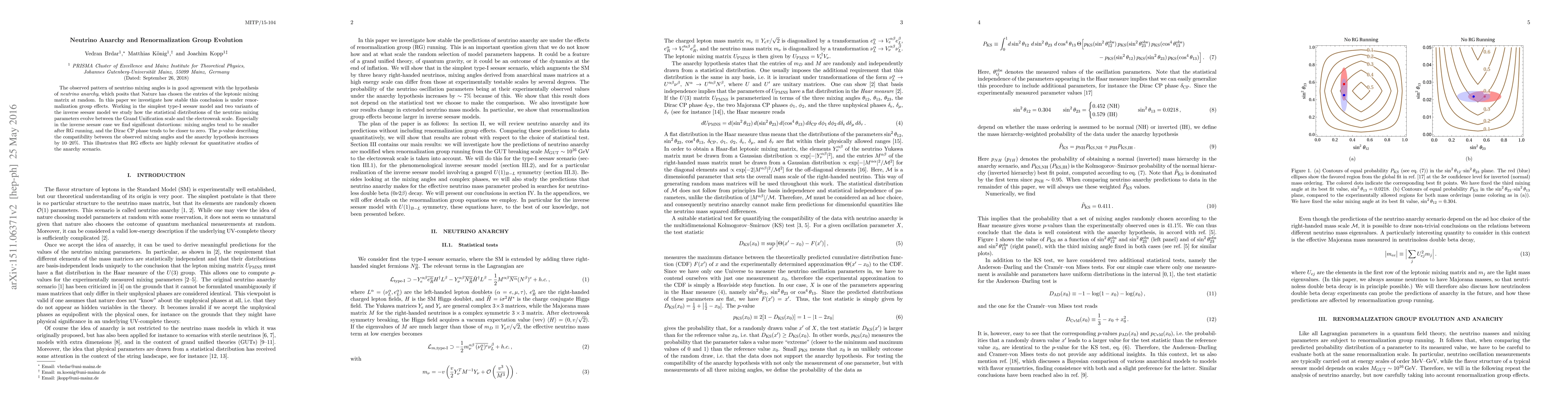 This paper examines the stability of the neutrino anarchy hypothesis under renormalization group effects in type-I and inverse seesaw models, finding significant distortions in mixing parameters, especially in the inverse seesaw case, which increases the compatibility p-value with the observed mixing angles by 10-20%.