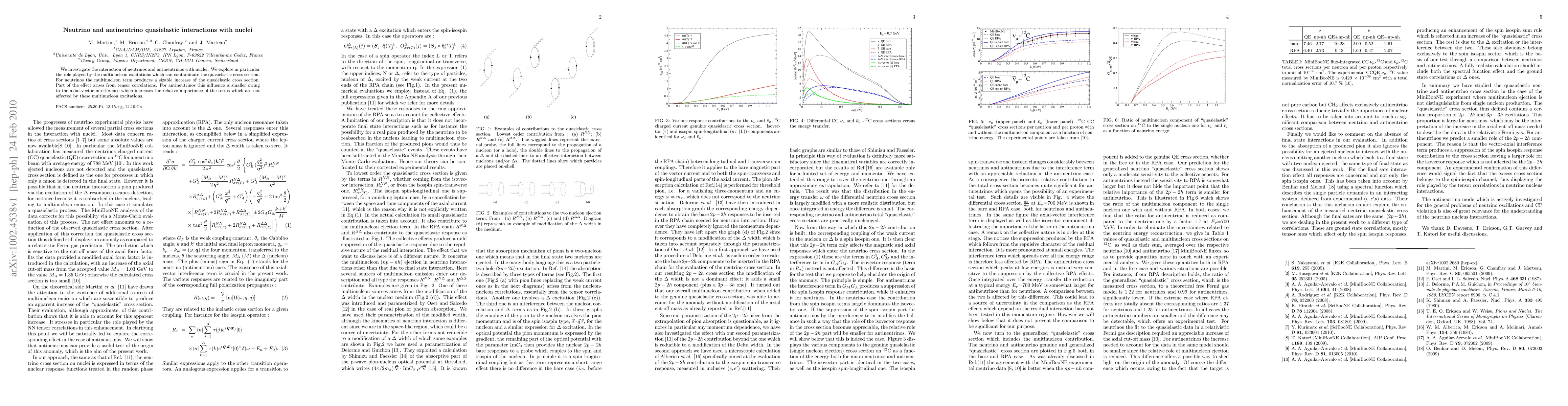 This study explores neutrino and antineutrino quasielastic interactions with nuclei, focusing on the impact of multinucleon excitations. For neutrinos, multinucleon interactions notably increase the quasielastic cross section, partly due to tensor correlations, while for antineutrinos, this effect is smaller due to axial-vector interference favoring unaffected terms.