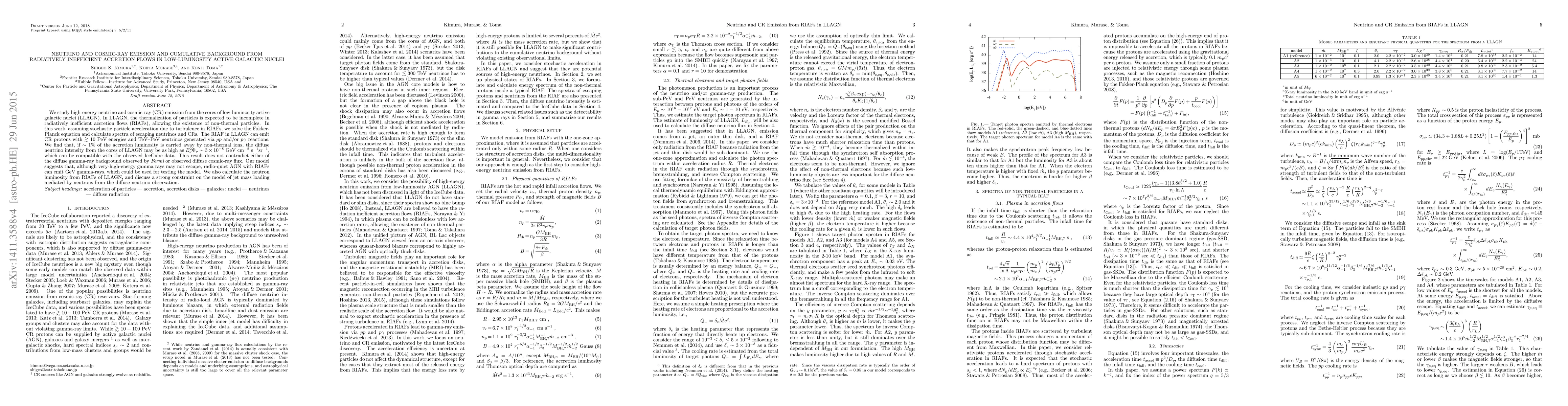 Low-luminosity active galactic nuclei with radiatively inefficient accretion flows can emit high-energy neutrinos and cosmic rays, potentially explaining the observed IceCube data. The model suggests these sources could also produce GeV gamma-rays for testing.