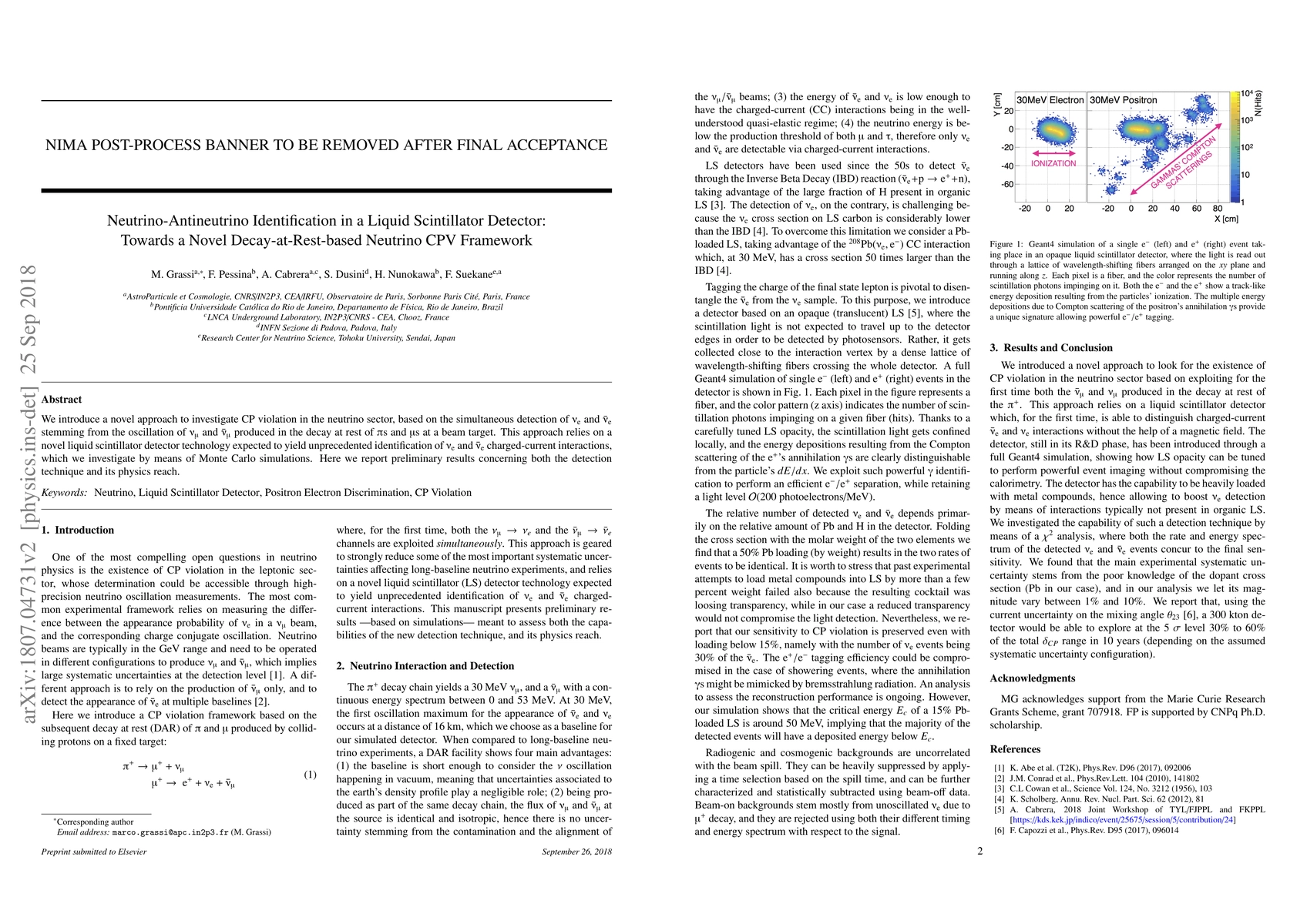 Researchers propose a new method to detect neutrino CP violation using liquid scintillator detectors to identify electron and antielectron neutrinos produced in the decay at rest of pions and muons, with promising preliminary results.