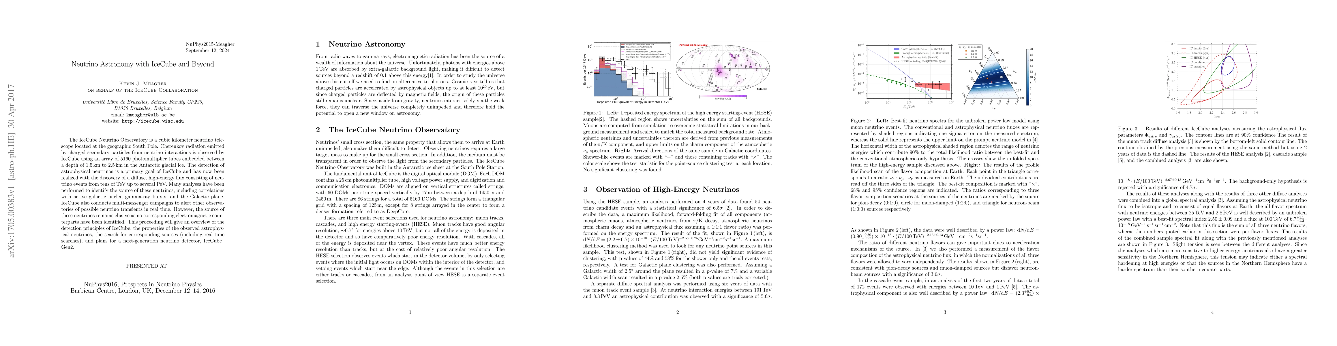 The IceCube Neutrino Observatory detects high-energy astrophysical neutrinos via Cherenkov radiation, identifying a diffuse flux from sources like active galactic nuclei but remains uncertain about their exact origins. Plans for IceCube-Gen2 aim to enhance detection capabilities.