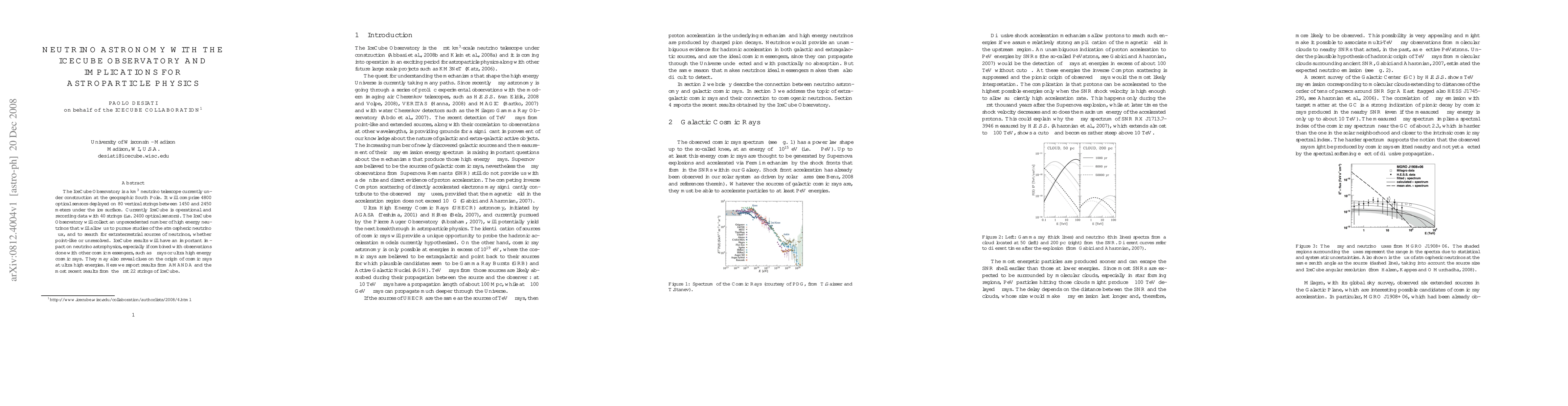 The IceCube Observatory is a km^3 neutrino telescope currently under construction at the geographic South Pole. It will comprise 4800 optical sensors deployed on 80 vertical strings between 1450 and 2450 meters under the ice surface. Currently IceCube is operational and recording data with 40 strings (i.e. 2400 optical sensors). The IceCube Observatory will collect an unprecedented number of high energy neutrinos that will allow us to pursue studies of the atmospheric neutrino flux, and to search for extraterrestrial sources of neutrinos, whether point-like or unresolved. IceCube results will have an important impact on neutrino astrophysics, especially if combined with observations done with other cosmic messengers, such as gamma rays or ultra high energy cosmic rays. They may also reveal clues on the origin of cosmic rays at ultra high energies. Here we report results from AMANDA and the most recent results from the first 22 strings of IceCube.