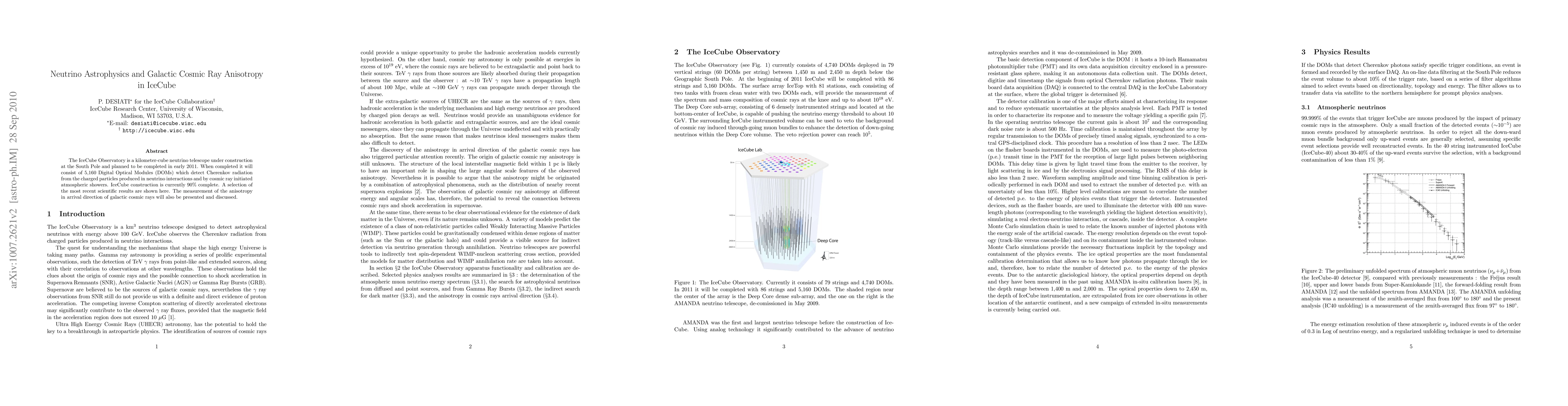 The IceCube Observatory is a kilometer-cube neutrino telescope under construction at the South Pole and planned to be completed in early 2011. When completed it will consist of 5,160 Digital Optical Modules (DOMs) which detect Cherenkov radiation from the charged particles produced in neutrino interactions and by cosmic ray initiated atmospheric showers. IceCube construction is currently 90% complete. A selection of the most recent scientific results are shown here. The measurement of the anisotropy in arrival direction of galactic cosmic rays will also be presented and discussed.
