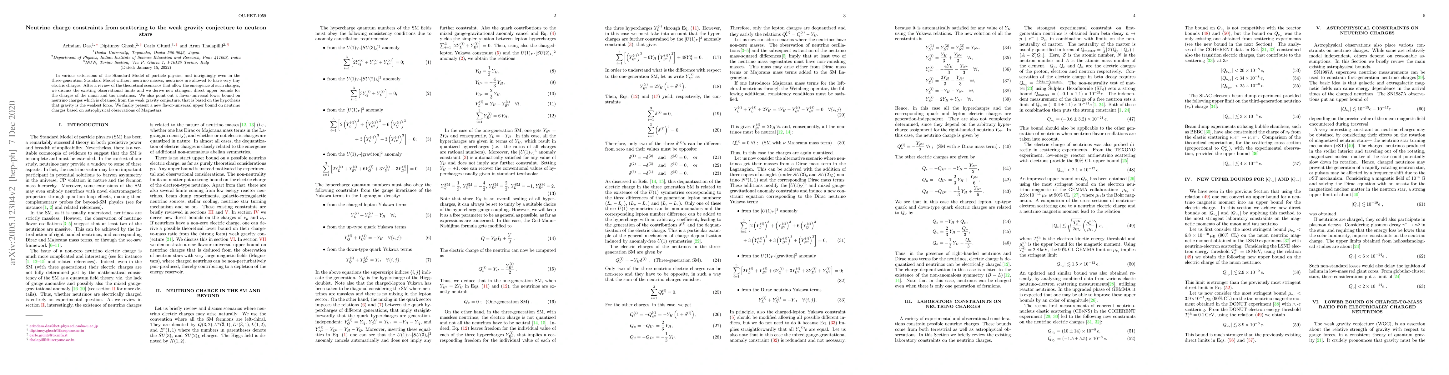 This paper reviews theoretical models allowing neutrinos to possess tiny electric charges and derives new stringent upper bounds for muon and tau neutrino charges from observational limits. It also establishes a flavor-universal lower bound from the weak gravity conjecture and a new universal upper bound based on Magnetar observations.