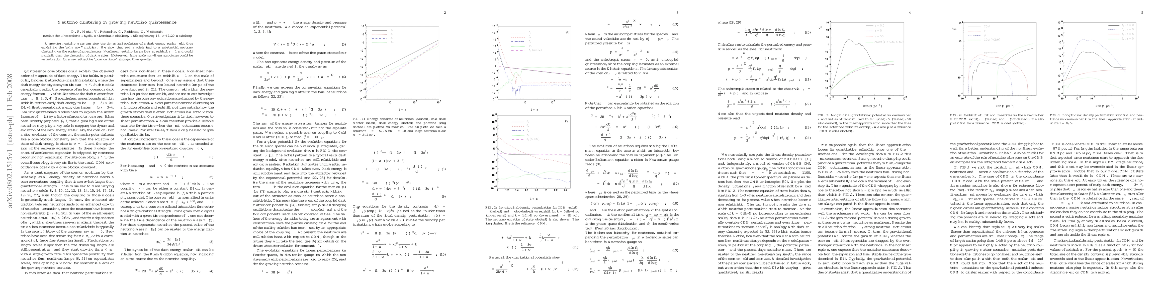 This paper explores how a growing neutrino mass can halt the evolution of dark energy, potentially solving the 'why now' problem, and demonstrates that it leads to significant neutrino clustering on supercluster scales, forming nonlinear structures at redshift z ~ 1 that may influence dark matter clustering and suggest a new attractive 'cosmon force'.