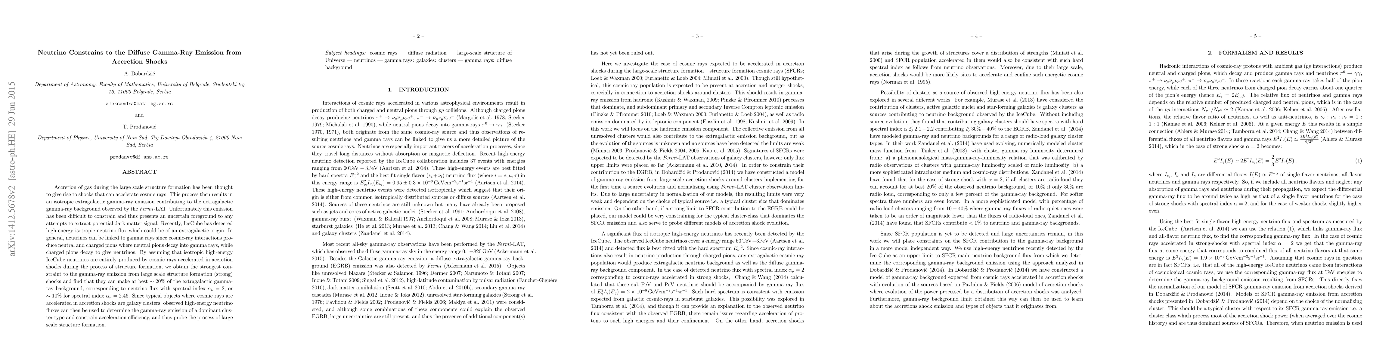 This paper uses high-energy neutrino data from IceCube to constrain the diffuse gamma-ray emission from cosmic rays accelerated in accretion shocks during structure formation, finding that such shocks contribute at most ~20% to the extragalactic gamma-ray background. This method can also probe the efficiency of cosmic ray acceleration in galaxy clusters.