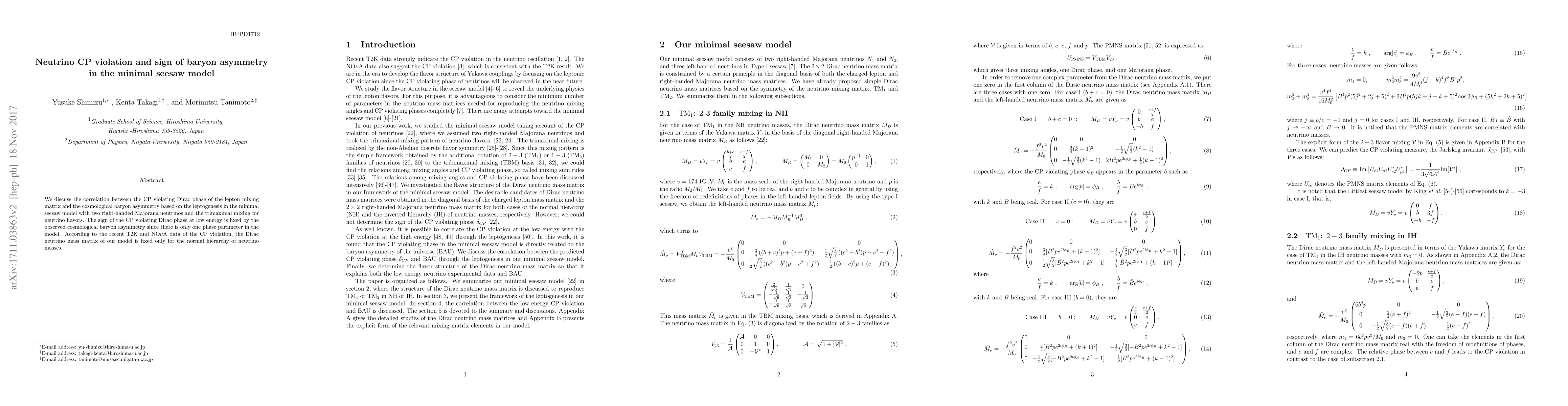 Summary: The paper explores the link between the CP violating Dirac phase in the lepton mixing matrix and the cosmological baryon asymmetry in the minimal seesaw model, revealing that the sign of the CP phase is determined by the observed baryon asymmetry. The model, constrained by recent T2K and NO$\nu$A data, supports only the normal hierarchy of neutrino masses.