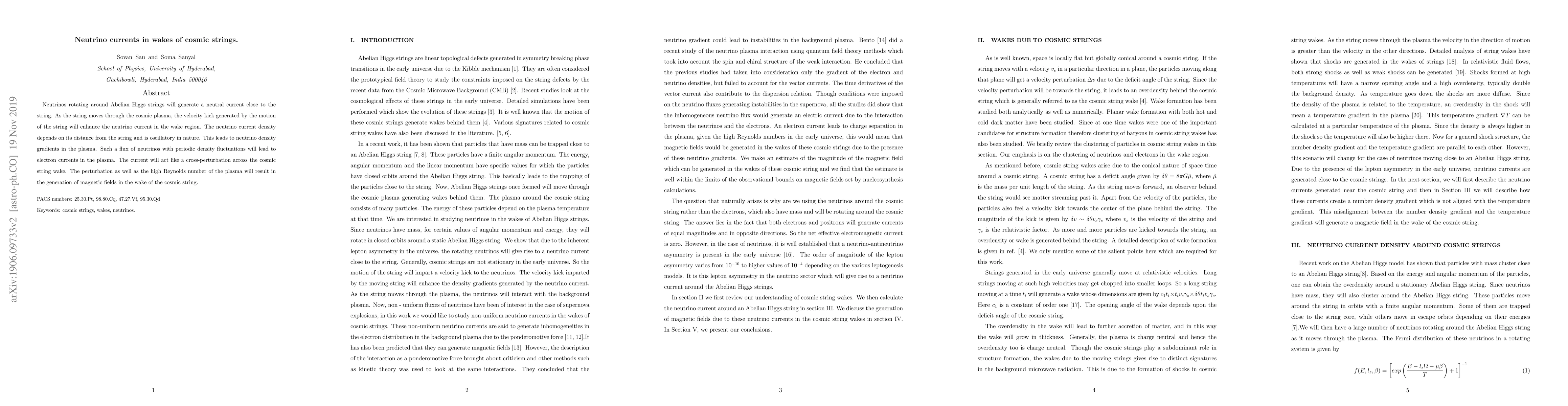 Research on cosmic strings suggests that neutrino currents can generate electron currents in plasma due to periodic density fluctuations, leading to the creation of magnetic fields.