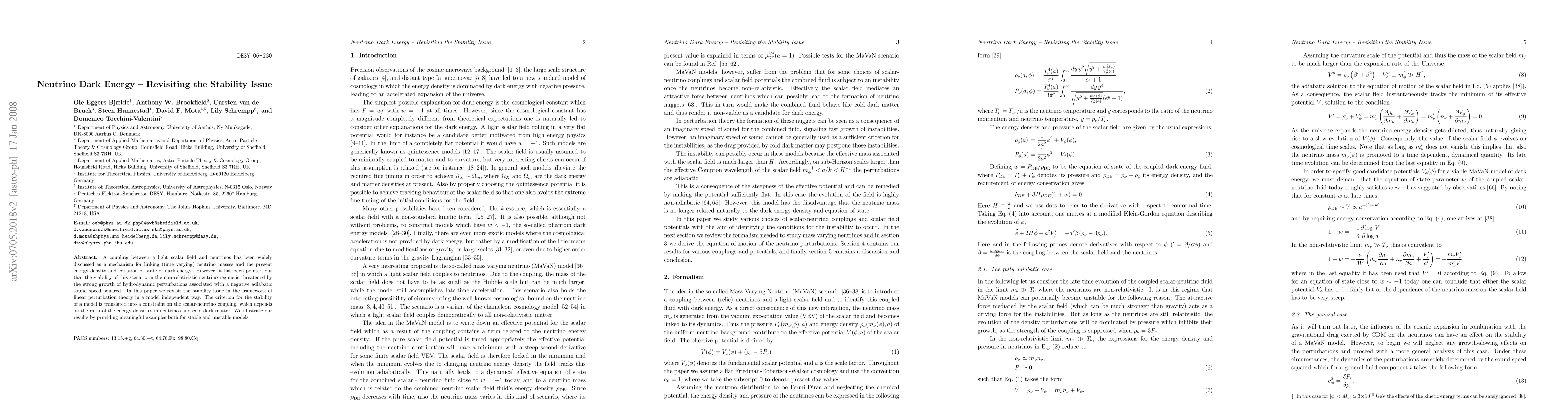 This paper examines the stability of a model where a light scalar field interacts with neutrinos to potentially explain dark energy. It addresses the issue of hydrodynamic perturbations in the non-relativistic neutrino regime, providing constraints on the scalar-neutrino coupling based on energy density ratios, and illustrates both stable and unstable scenarios.