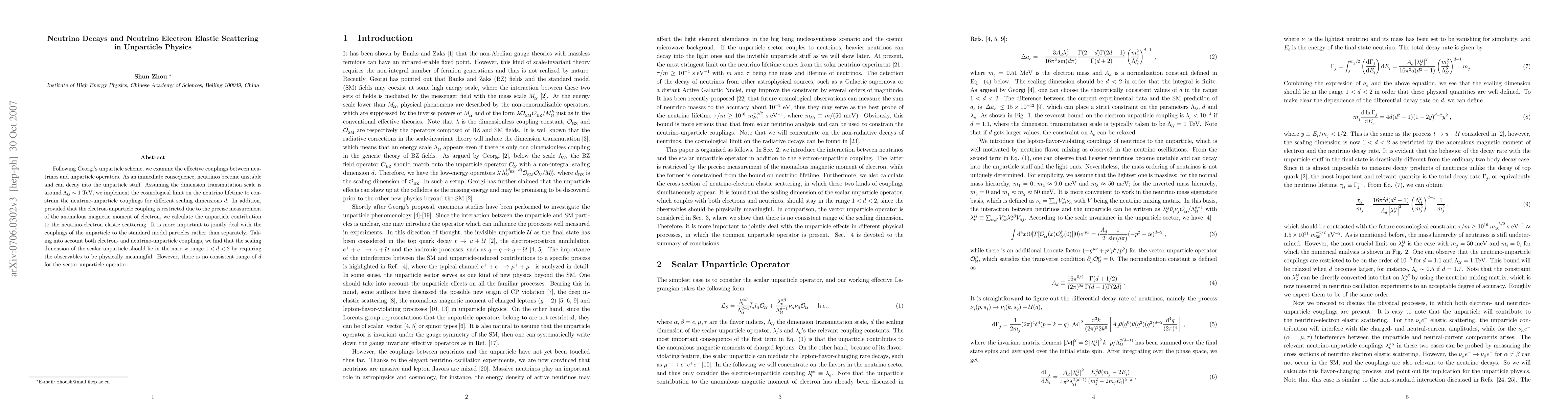 Following Georgi's unparticle scheme, we examine the effective couplings between neutrinos and unparticle operators. As an immediate consequence, neutrinos become unstable and can decay into the unparticle stuff. Assuming the dimension transmutation scale is around $\Lambda^{}_{\cal U} \sim 1 ~{\rm TeV}$, we implement the cosmological limit on the neutrino lifetime to constrain the neutrino-unparticle couplings for different scaling dimensions $d$. In addition, provided that the electron-unparticle coupling is restricted due to the precise measurement of the anomalous magnetic moment of electron, we calculate the unparticle contribution to the neutrino-electron elastic scattering. It is more important to jointly deal with the couplings of the unparticle to the standard model particles rather than separately. Taking into account both electron- and neutrino-unparticle couplings, we find that the scaling dimension of the scalar unparticle should lie in the narrow range $1 < d < 2$ by requiring the observables to be physically meaningful. However, there is no consistent range of $d$ for the vector unparticle operator.