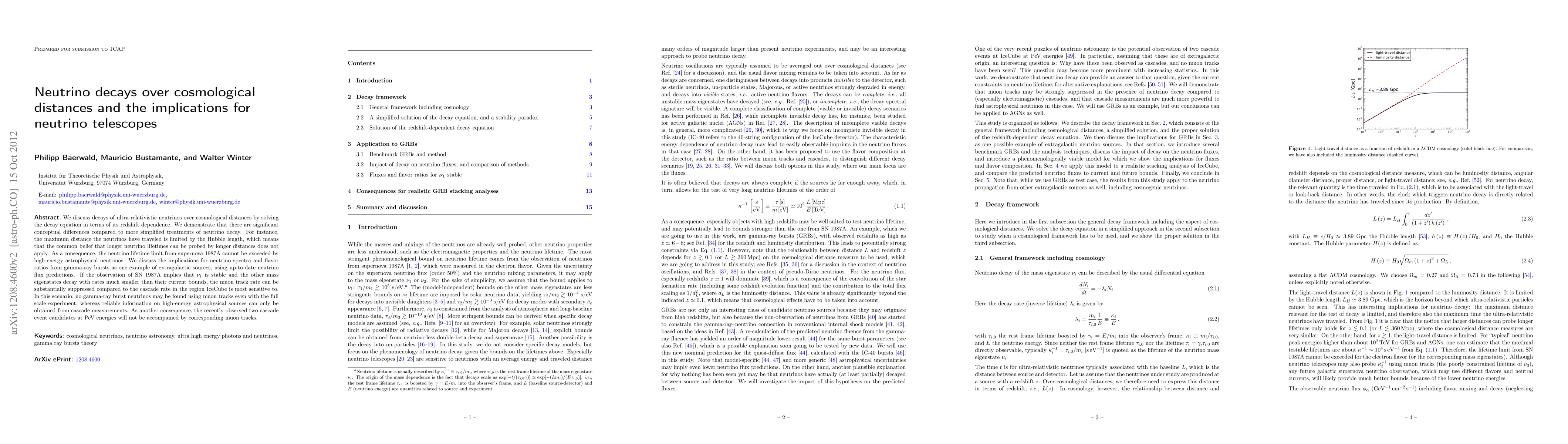 We discuss decays of ultra-relativistic neutrinos over cosmological distances by solving the decay equation in terms of its redshift dependence. We demonstrate that there are significant conceptual differences compared to more simplified treatments of neutrino decay. For instance, the maximum distance the neutrinos have traveled is limited by the Hubble length, which means that the common belief that longer neutrino lifetimes can be probed by longer distances does not apply. As a consequence, the neutrino lifetime limit from supernova 1987A cannot be exceeded by high-energy astrophysical neutrinos. We discuss the implications for neutrino spectra and flavor ratios from gamma-ray bursts as one example of extragalactic sources, using up-to-date neutrino flux predictions. If the observation of SN 1987A implies that \nu_1 is stable and the other mass eigenstates decay with rates much smaller than their current bounds, the muon track rate can be substantially suppressed compared to the cascade rate in the region IceCube is most sensitive to. In this scenario, no gamma-ray burst neutrinos may be found using muon tracks even with the full scale experiment, whereas reliable information on high-energy astrophysical sources can only be obtained from cascade measurements. As another consequence, the recently observed two cascade event candidates at PeV energies will not be accompanied by corresponding muon tracks.