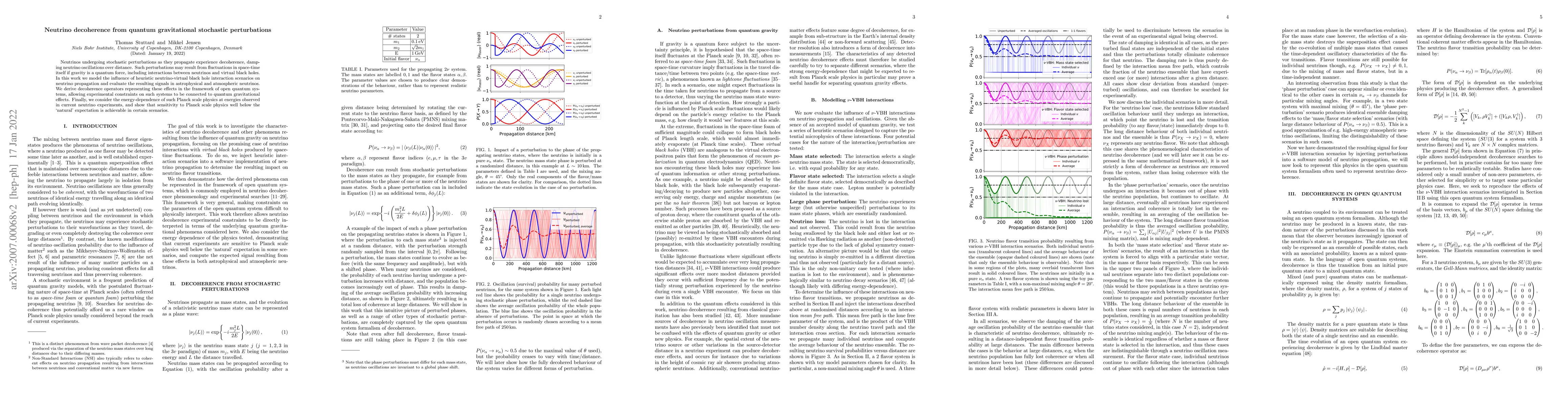 This paper investigates how quantum gravitational stochastic perturbations, including neutrino interactions with virtual black holes, cause decoherence and dampen neutrino oscillations over long distances. It models these effects within the framework of open quantum systems, demonstrating potential experimental constraints on quantum gravitational influences and showing that current neutrino experiments may detect Planck scale physics.