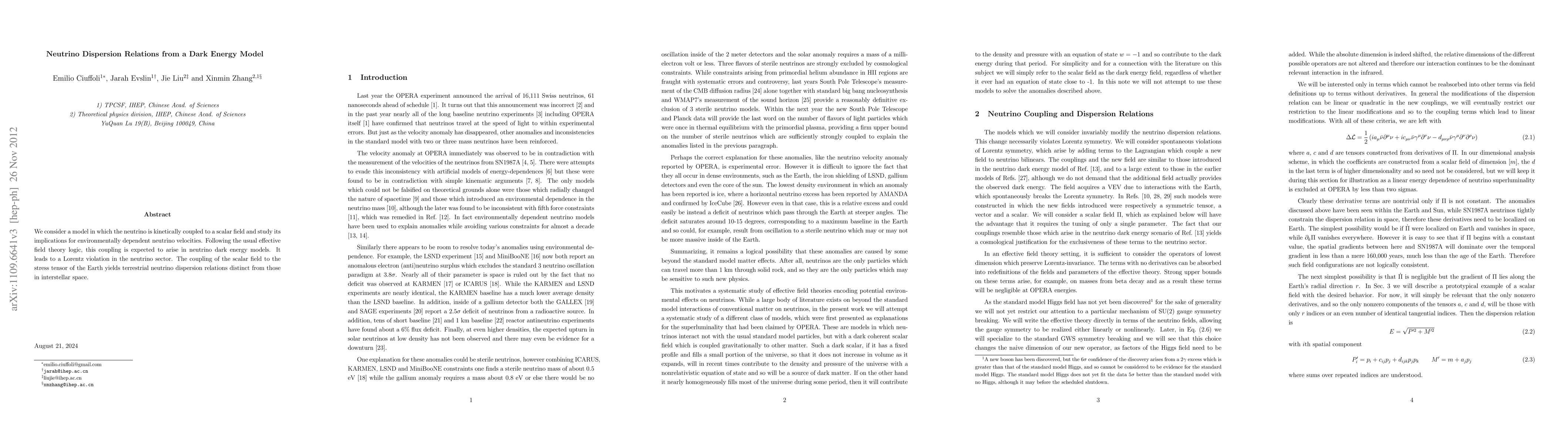 We consider a model in which the neutrino is kinetically coupled to a scalar field and study its implications for environmentally dependent neutrino velocities. Following the usual effective field theory logic, this coupling is expected to arise in neutrino dark energy models. It leads to a Lorentz violation in the neutrino sector. The coupling of the scalar field to the stress tensor of the Earth yields terrestrial neutrino dispersion relations distinct from those in interstellar space.