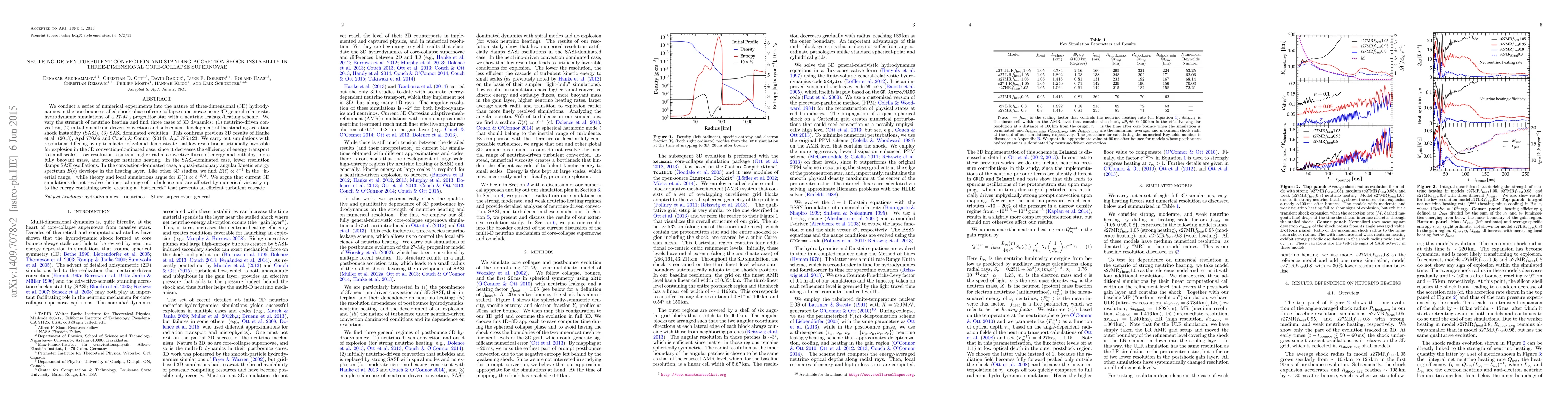 We conduct a series of numerical experiments into the nature of three-dimensional (3D) hydrodynamics in the postbounce stalled-shock phase of core-collapse supernovae using 3D general-relativistic hydrodynamic simulations of a $27$-$M_\odot$ progenitor star with a neutrino leakage/heating scheme. We vary the strength of neutrino heating and find three cases of 3D dynamics: (1) neutrino-driven convection, (2) initially neutrino-driven convection and subsequent development of the standing accretion shock instability (SASI), (3) SASI dominated evolution. This confirms previous 3D results of Hanke et al. 2013, ApJ 770, 66 and Couch & Connor 2014, ApJ 785, 123. We carry out simulations with resolutions differing by up to a factor of $\sim$4 and demonstrate that low resolution is artificially favorable for explosion in the 3D convection-dominated case, since it decreases the efficiency of energy transport to small scales. Low resolution results in higher radial convective fluxes of energy and enthalpy, more fully buoyant mass, and stronger neutrino heating. In the SASI-dominated case, lower resolution damps SASI oscillations. In the convection-dominated case, a quasi-stationary angular kinetic energy spectrum $E(\ell)$ develops in the heating layer. Like other 3D studies, we find $E(\ell) \propto \ell^{-1}$ in the "inertial range," while theory and local simulations argue for $E(\ell) \propto \ell^{-5/3}$. We argue that current 3D simulations do not resolve the inertial range of turbulence and are affected by numerical viscosity up to the energy containing scale, creating a "bottleneck" that prevents an efficient turbulent cascade.