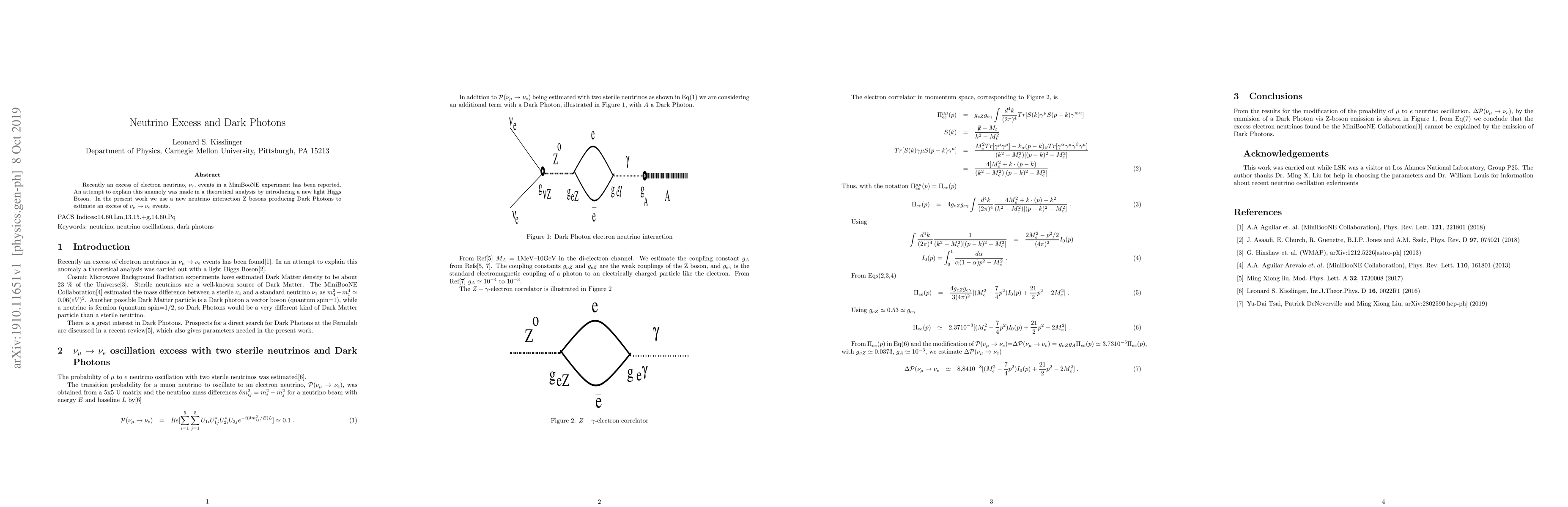 Researchers propose a new explanation for MiniBooNE's electron neutrino excess: dark photons interacting with Z bosons. They estimate an increase in muon-to-electron neutrino conversion events.