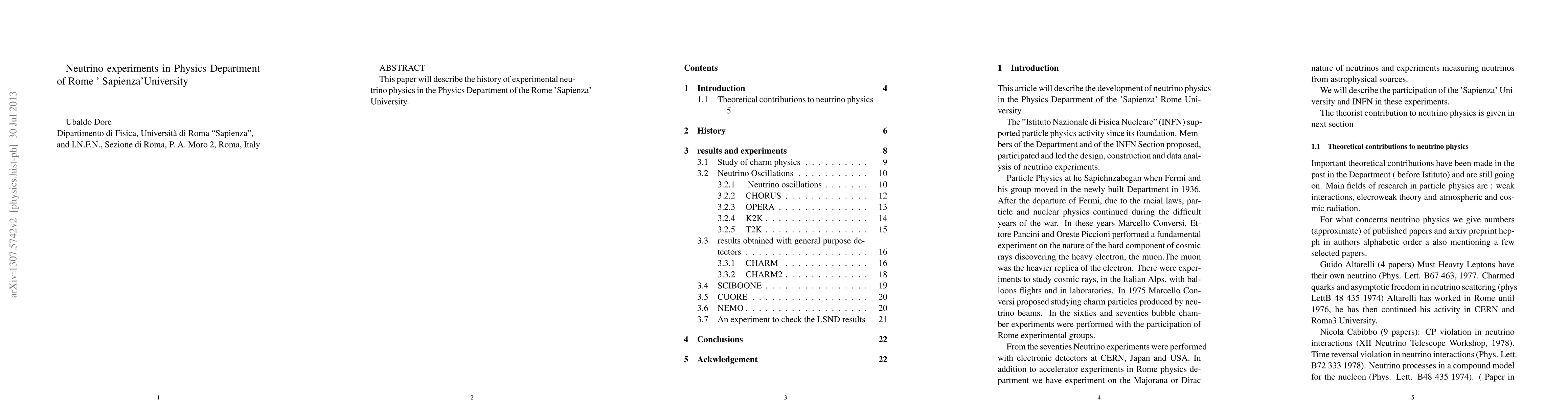 This paper describes the history of experimental neutrino physics in the physics department of Rome Sapienza University