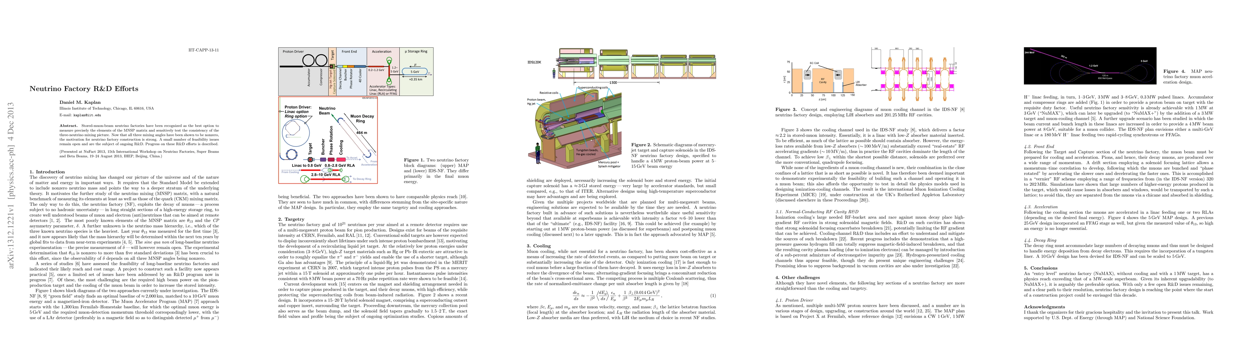 Stored-muon-beam neutrino factories have been recognized as the best option to measure precisely the elements of the MNSP matrix and sensitively test the consistency of the three-neutrino mixing picture. Now that all three mixing angles have been shown to be nonzero, the motivation for neutrino factory construction is strong. A small number of feasibility issues remain open and are the subject of ongoing R&D. Progress on these R&D efforts is described.