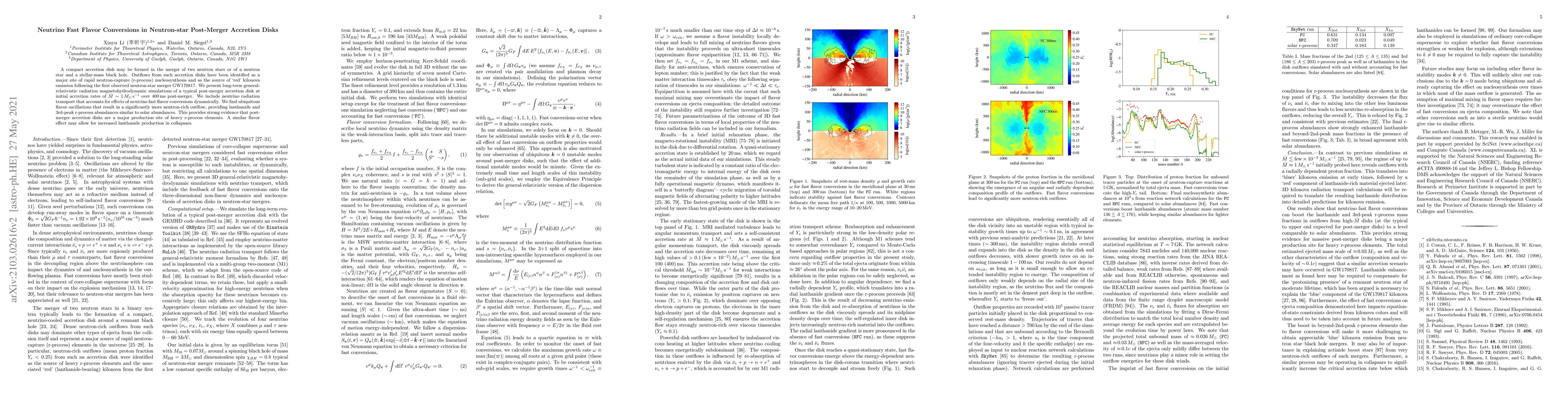 A compact accretion disk may be formed in the merger of two neutron stars or of a neutron star and a stellar-mass black hole. Outflows from such accretion disks have been identified as a major site of rapid neutron-capture (r-process) nucleosynthesis and as the source of 'red' kilonova emission following the first observed neutron-star merger GW170817. We present long-term general-relativistic radiation magnetohydrodynamic simulations of a typical post-merger accretion disk at initial accretion rates of $\dot{M}\sim 1\,M_\odot\,\text{s}^{-1}$ over 400ms post-merger. We include neutrino radiation transport that accounts for effects of neutrino fast flavor conversions dynamically. We find ubiquitous flavor oscillations that result in a significantly more neutron-rich outflow, providing lanthanide and 3rd-peak r-process abundances similar to solar abundances. This provides strong evidence that post-merger accretion disks are a major production site of heavy r-process elements. A similar flavor effect may allow for increased lanthanide production in collapsars. The formalism presented here may also be used in simulations of core-collapse supernovae to explore whether fast conversions strengthen or weaken the explosion.