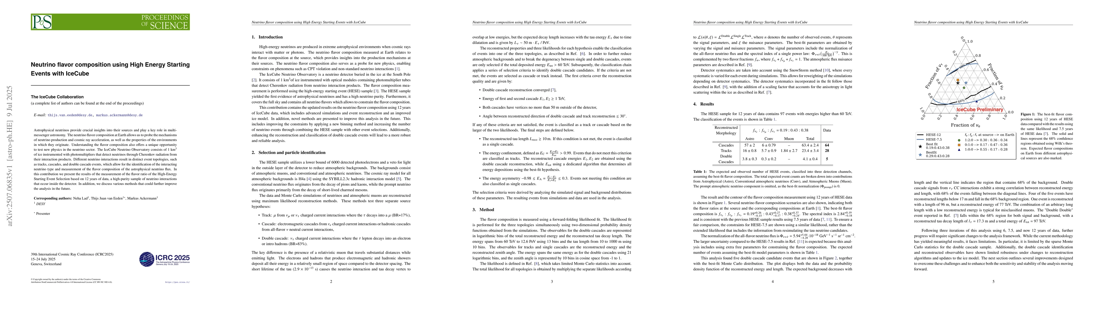 Astrophysical neutrinos provide crucial insights into their sources and play a key role in multi-messenger astronomy. The neutrino flavor composition at Earth allows us to probe the mechanisms of neutrino production and cosmic ray acceleration, as well as the properties of the environments in which they originate. Understanding the flavor composition also offers a unique opportunity to test new physics in the neutrino sector. The IceCube Neutrino Observatory consists of 1 km$^3$ of ice instrumented with photomultipliers that detect neutrinos through Cherenkov radiation from their interaction products. Different neutrino interactions result in distinct event topologies, such as tracks, cascades, and double cascade events, which allow for the identification of the interacting neutrino type and measurement of the flavor composition of the astrophysical neutrino flux. In this contribution we present the results of the measurement of the flavor ratio of the High-Energy Starting Event Selection based on 12 years of data, a high-purity sample of neutrino interactions that occur inside the detector. In addition, we discuss various methods that could further improve the analysis in the future.