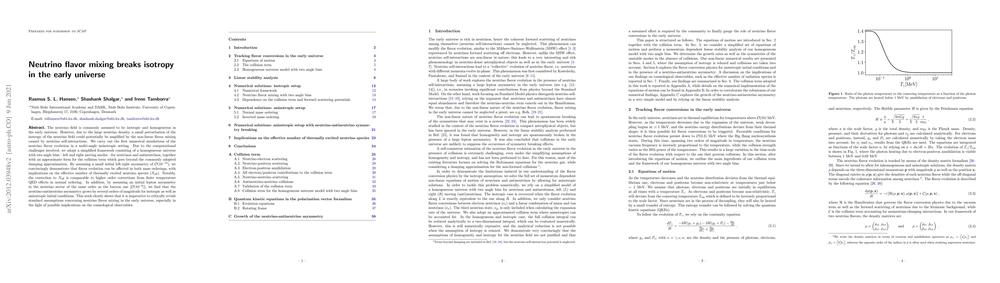 The paper presents the first numerical simulations of neutrino flavor evolution in an anisotropic setting, demonstrating the effects of non-linear flavor mixing on early universe neutrino field isotropy.