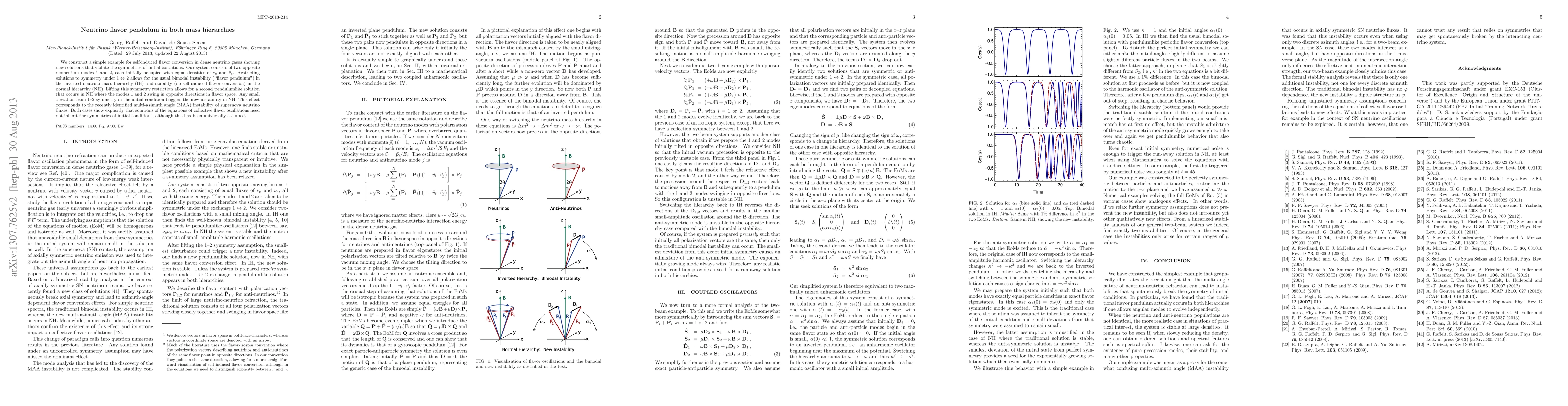We construct a simple example for self-induced flavor conversion in dense neutrino gases showing new solutions that violate the symmetries of initial conditions. Our system consists of two opposite momentum modes 1 and 2, each initially occupied with equal densities of nu_e and anti-nu_e. Restricting solutions to symmetry under 1 <-> 2 allows for the usual bimodal instability ("flavor pendulum") in the inverted neutrino mass hierarchy (IH) and stability (no self-induced flavor conversion) in the normal hierarchy (NH). Lifting this symmetry restriction allows for a second pendulum-like solution that occurs in NH where the modes 1 and 2 swing in opposite directions in flavor space. Any small deviation from 1-2 symmetry in the initial condition triggers the new instability in NH. This effect corresponds to the recently identified multi-azimuth angle (MAA) instability of supernova neutrino fluxes. Both cases show explicitly that solutions of the equations of collective flavor oscillations need not inherit the symmetries of initial conditions, although this has been universally assumed.