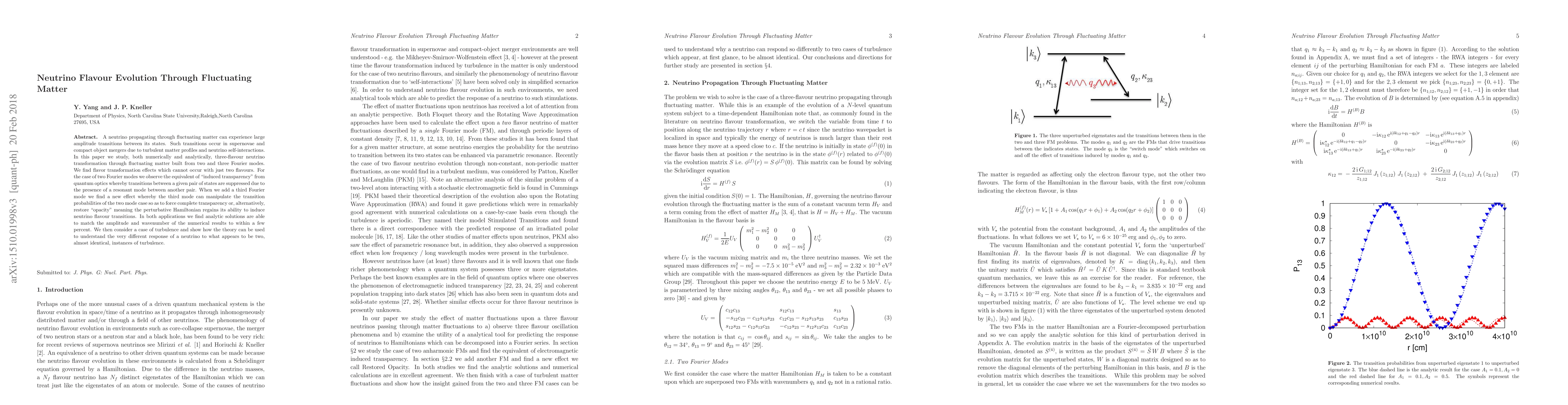 A neutrino propagating through fluctuating matter can experience large amplitude transitions between its states. Such transitions occur in supernovae and compact object mergers due to turbulent matter profiles and neutrino self-interactions. In this paper we study, both numerically and analytically, three-flavour neutrino transformation through fluctuating matter built from two and three Fourier modes. We find flavor transformation effects which cannot occur with just two flavours. For the case of two Fourier modes we observe the equivalent of "induced transparency" from quantum optics whereby transitions between a given pair of states are suppressed due to the presence of a resonant mode between another pair. When we add a third Fourier mode we find a new effect whereby the third mode can manipulate the transition probabilities of the two mode case so as to force complete transparency or, alternatively, restore "opacity" meaning the perturbative Hamiltonian regains its ability to induce neutrino flavour transitions. In both applications we find analytic solutions are able to match the amplitude and wavenumber of the numerical results to within a few percent. We then consider a case of turbulence and show how the theory can be used to understand the very different response of a neutrino to what appears to be two, almost identical, instances of turbulence.