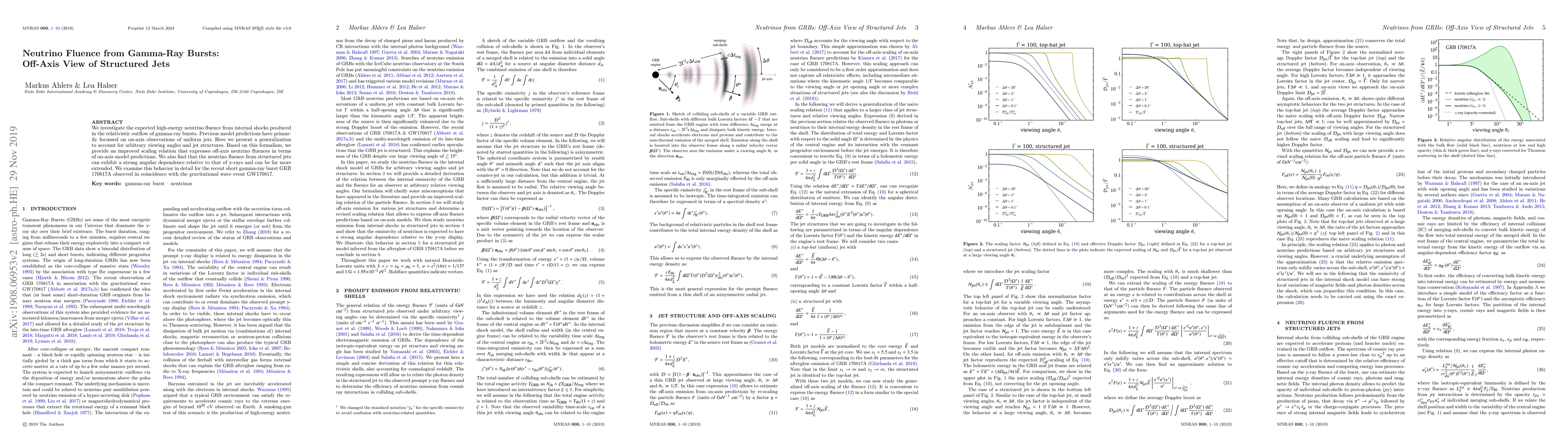 This paper explores high-energy neutrino fluence from gamma-ray bursts, focusing on off-axis views of structured jets, and provides a new scaling relation for off-axis neutrino fluences. It highlights the strong angular dependence of neutrino fluence compared to gamma-rays, using GRB 170817A as a case study.