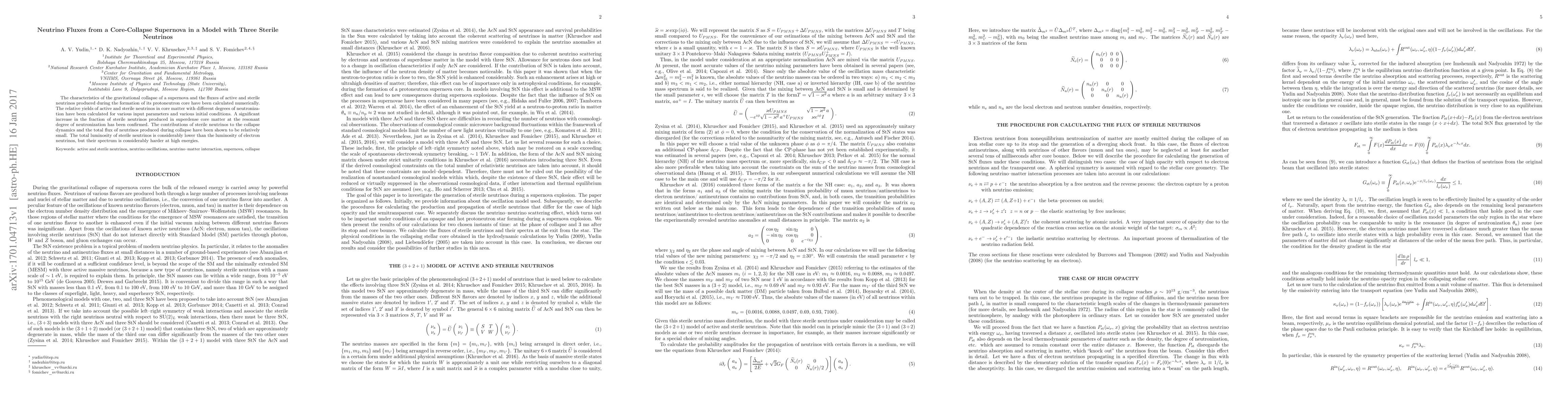 This paper numerically investigates the neutrino fluxes from a core-collapse supernova, focusing on the production of both active and sterile neutrinos. It finds a significant increase in sterile neutrino production at a resonant degree of neutronization, though their overall contribution to the collapse dynamics and total neutrino flux remains small.