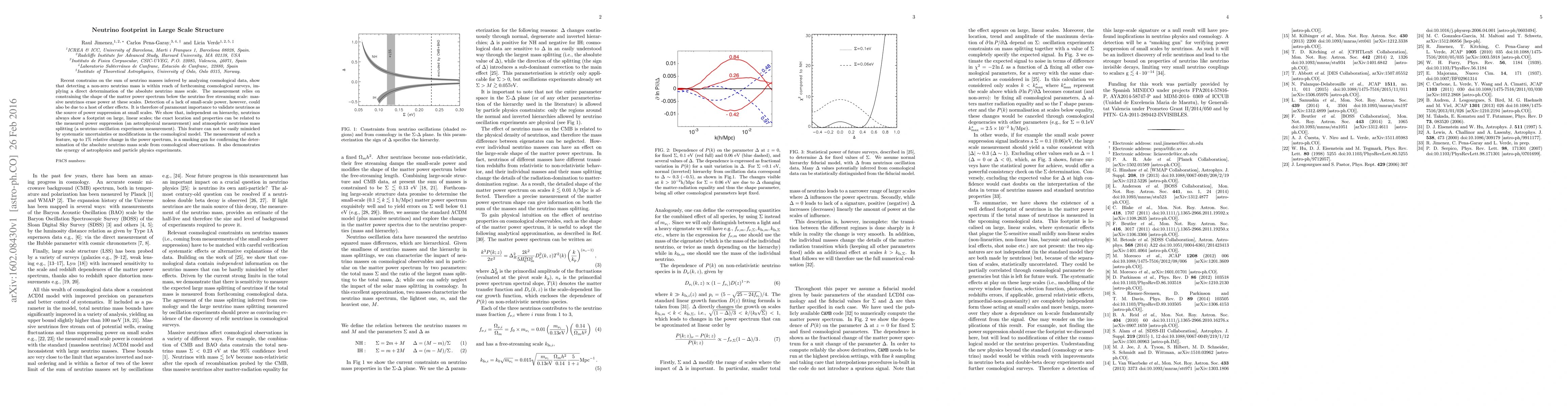 Recent constrains on the sum of neutrino masses inferred by analyzing cosmological data, show that detecting a non-zero neutrino mass is within reach of forthcoming cosmological surveys, implying a direct determination of the absolute neutrino mass scale. The measurement relies on constraining the shape of the matter power spectrum below the neutrino free streaming scale: massive neutrinos erase power at these scales. Detection of a lack of small-scale power, however, could also be due to a host of other effects. It is therefore of paramount importance to validate neutrinos as the source of power suppression at small scales. We show that, independent on hierarchy, neutrinos always show a footprint on large, linear scales; the exact location and properties can be related to the measured power suppression (an astrophysical measurement) and atmospheric neutrinos mass splitting (a neutrino oscillation experiment measurement). This feature can not be easily mimicked by systematic uncertainties or modifications in the cosmological model. The measurement of such a feature, up to 1% relative change in the power spectrum, is a smoking gun for confirming the determination of the absolute neutrino mass scale from cosmological observations. It also demonstrates the synergy of astrophysics and particle physics experiments.