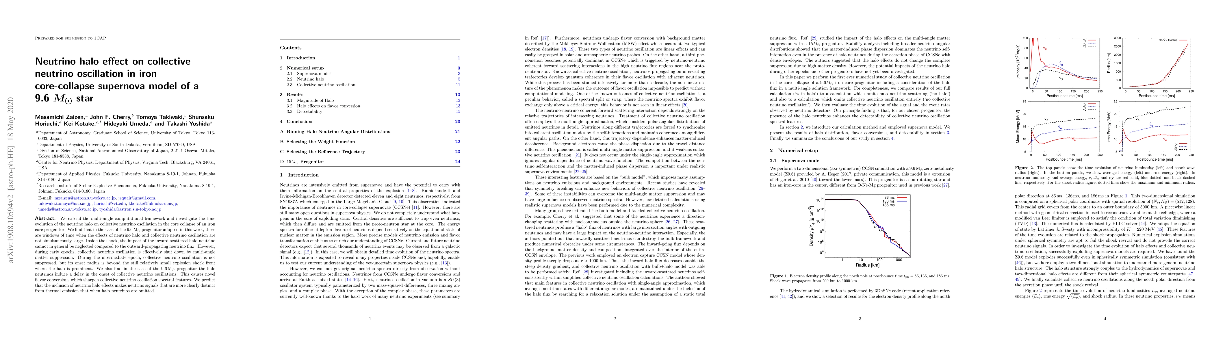 This study extends a multi-angle computational framework to explore the impact of neutrino halo on collective neutrino oscillation in a $9.6\, \rm M_\odot$ iron core-collapse supernova model. The findings indicate that while halo neutrinos significantly affect the inward-scattered flux, collective oscillations are delayed and altered, leading to distinct spectral features in the neutrino signal.